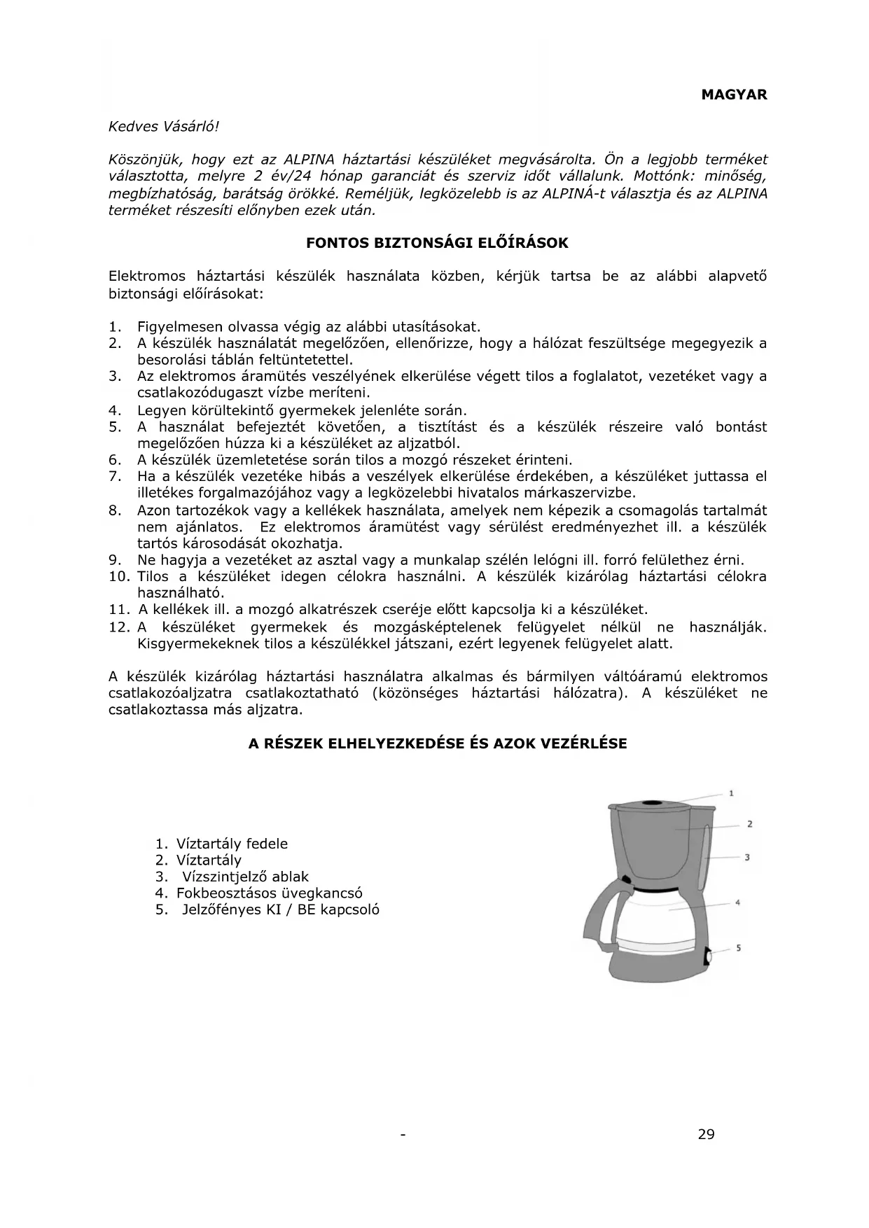 Kedves Vásárló! Köszönjük, hogy ezt az ALPINA háztartási készüléket megvásárolta. Ön a legjobb terméket választotta, melyre 2 év/24 hónap garanciát és szerviz időt vállalunk. Mottónk: minőség, megbízhatóság, barátság örökké. Reméljük, legközelebb is az ALPINÁ-t választja és az ALPINA terméket részesíti előnyben ezek után.