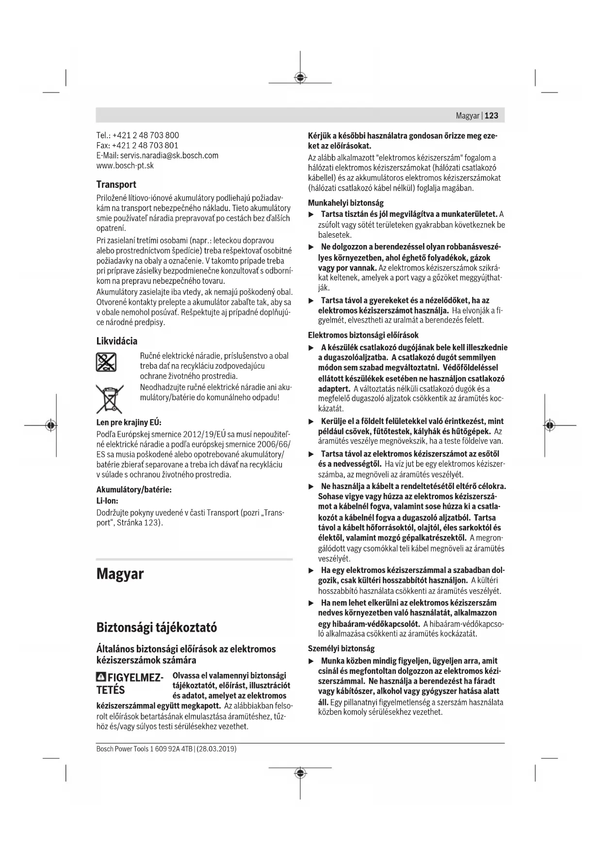 közben komoly sérülésekhez vezethet. Bosch Power Tools 1 609 92A 4TB | (28.03.2019)124 | Magyar