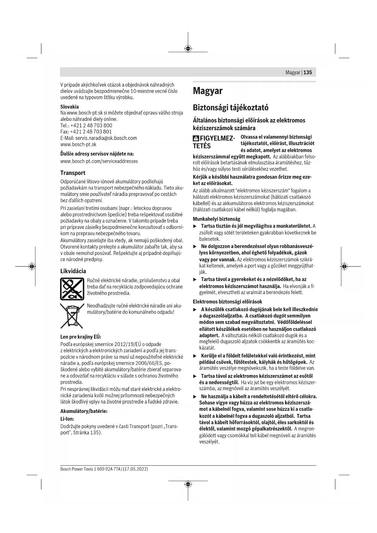 veszélyét. Bosch Power Tools 1 609 92A 7TA | (17.05.2022)136 | Magyar