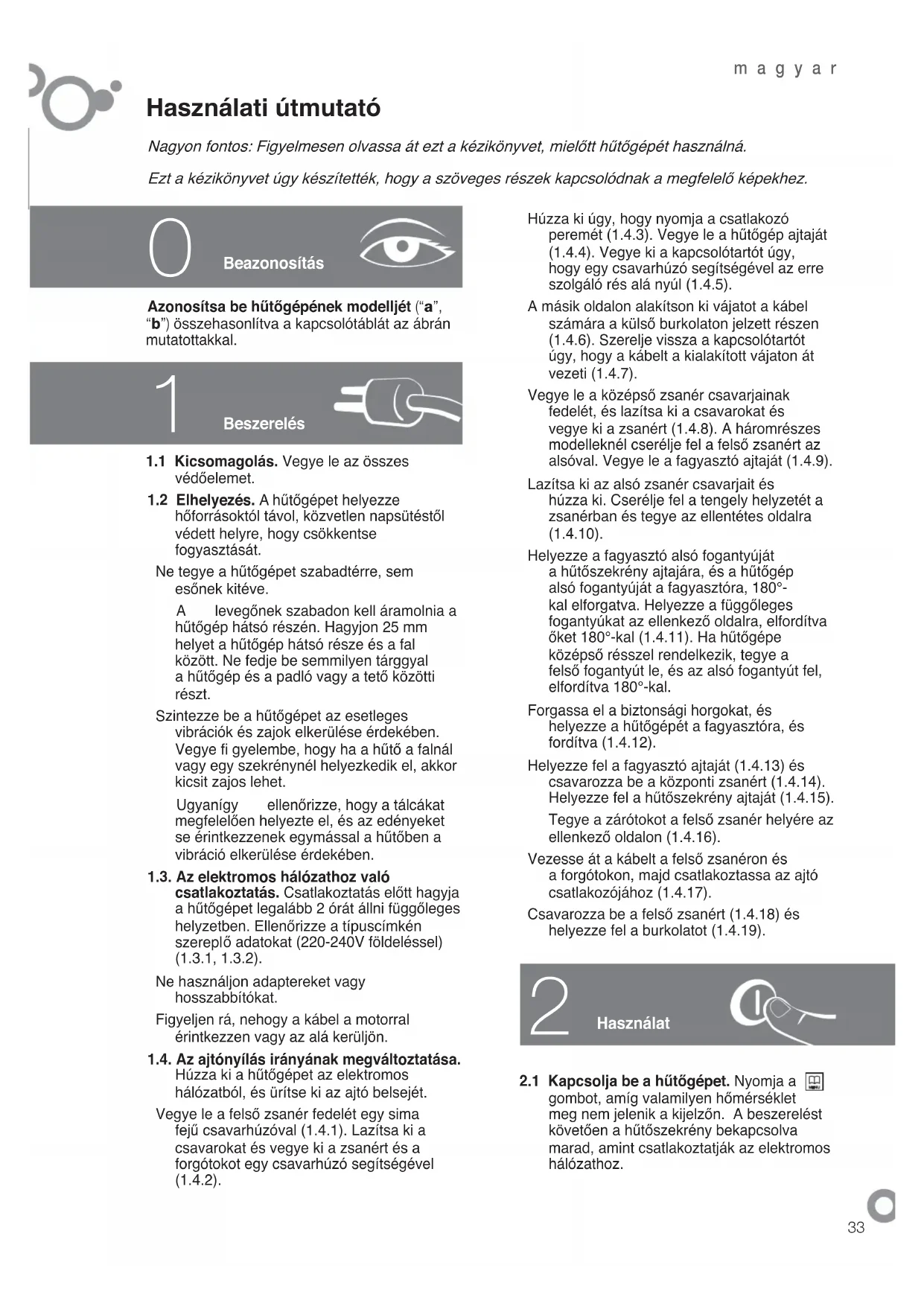 Nagyon fontos: Figyelmesen olvassa at ezt a kezikonyvet, mielott hutogepet hasznalna.