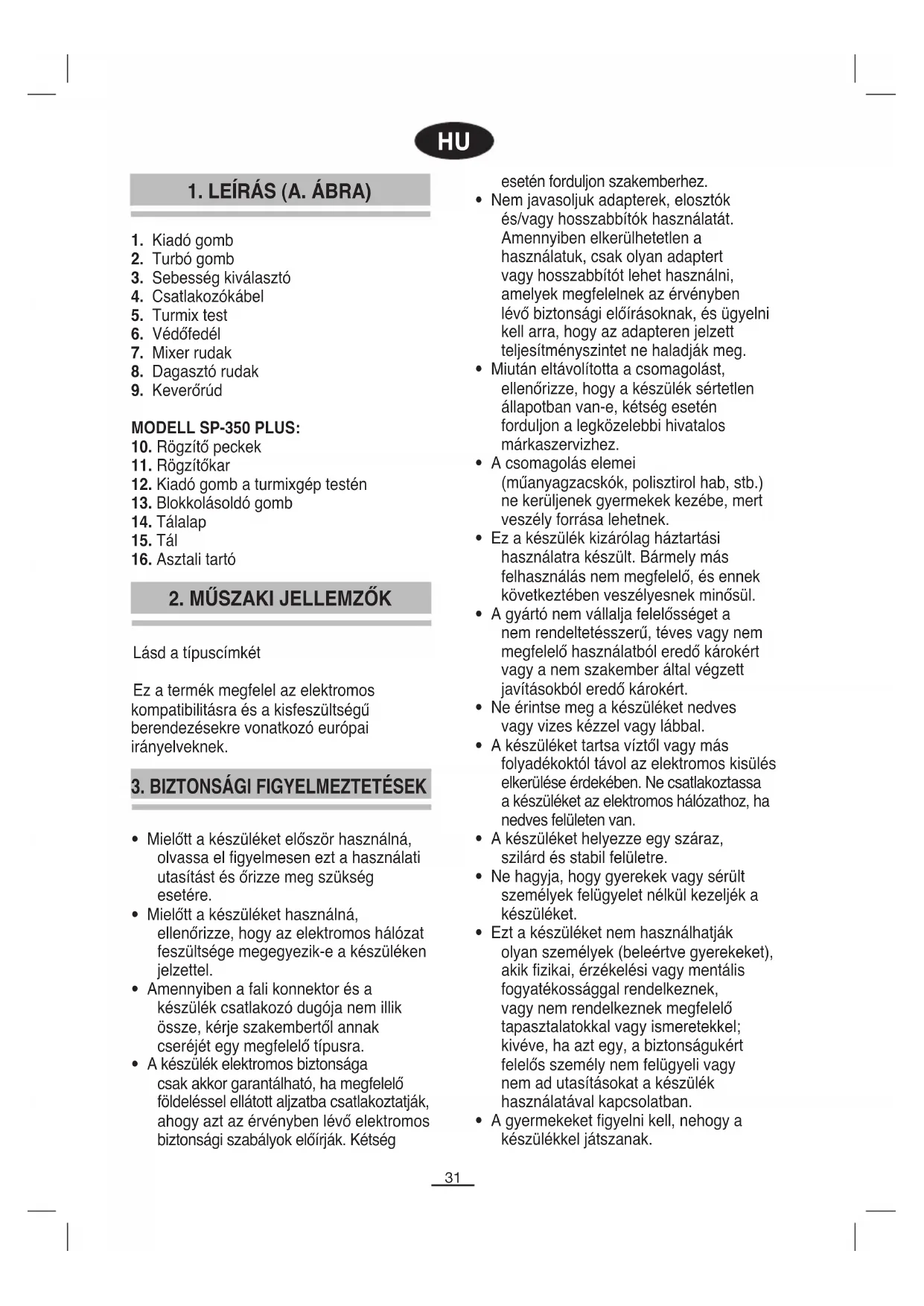 HASZNÁLATI ÚTMUTATÓ SP350 FAGOR