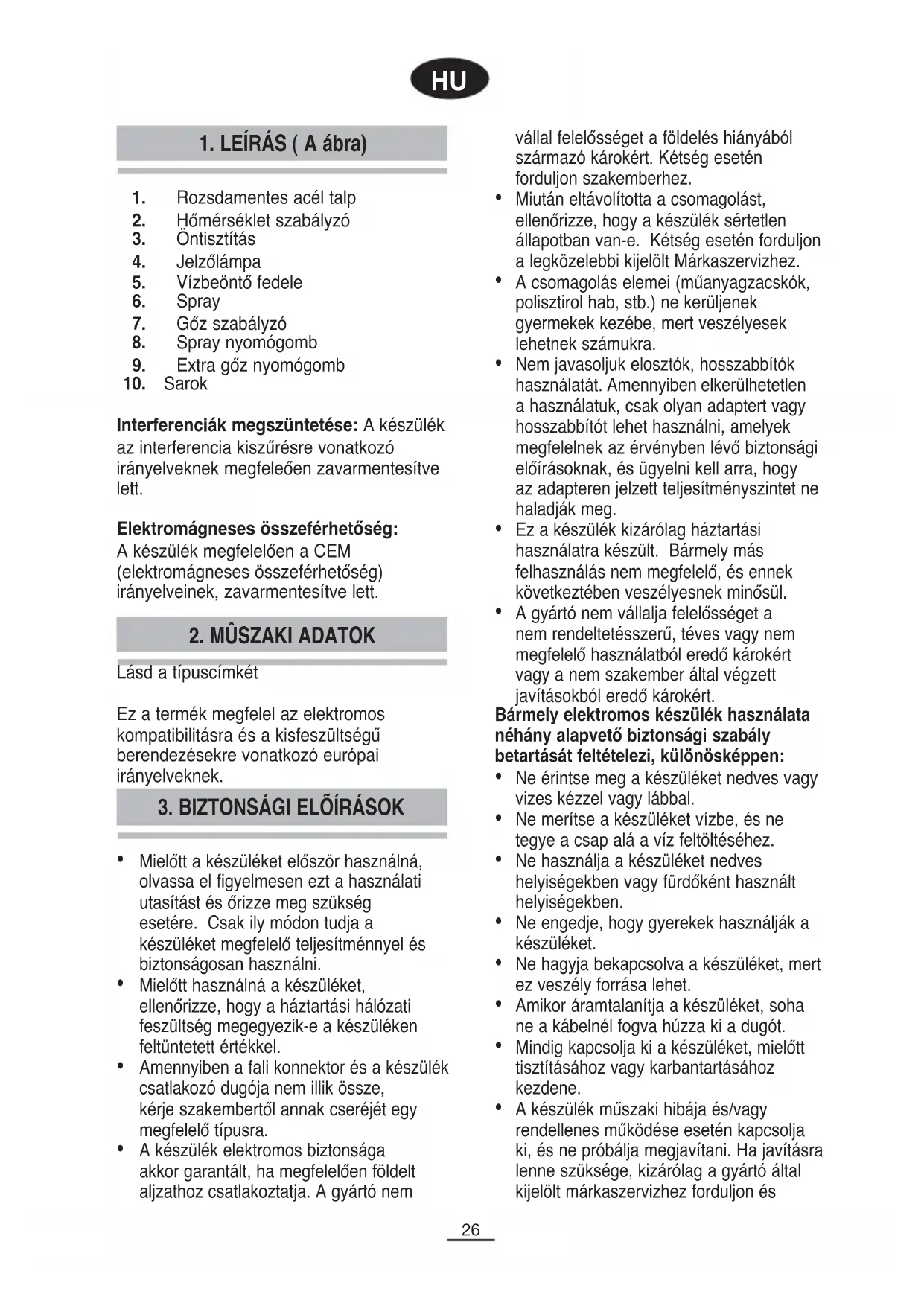 3. BIZTONSÁGI ELÕÍRÁSOK