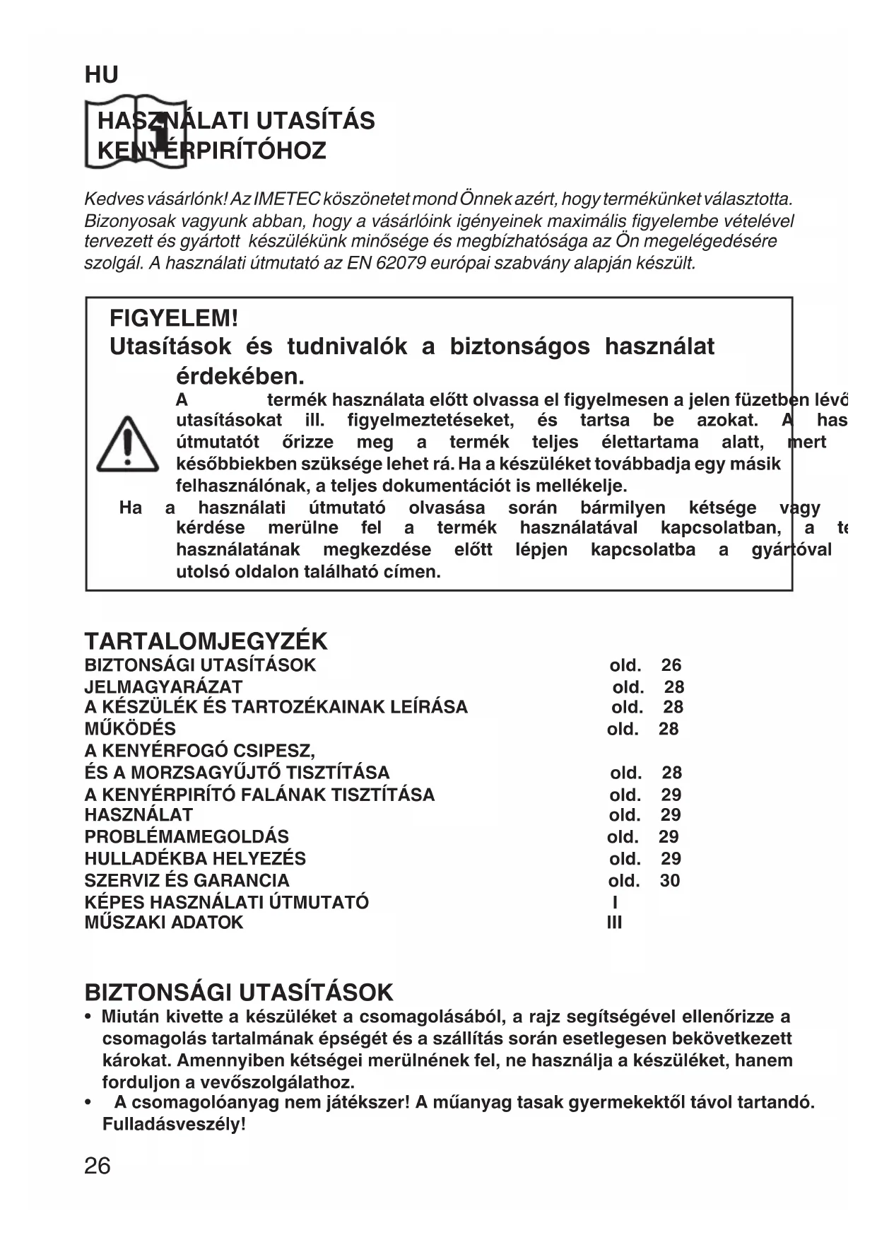 25HU HASZNÁLATI UTASÍTÁS KENYÉRPIRÍTÓHOZ Kedves vásárlónk! Az IMETEC köszönetet mond Önnek azért, hogy termékünket választotta.