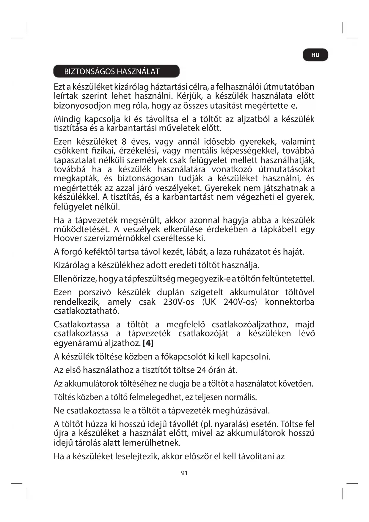 BIZTONSÁGOS HASZNÁLAT Ezt a készüléket kizárólag háztartási célra, a felhasználói útmutatóban