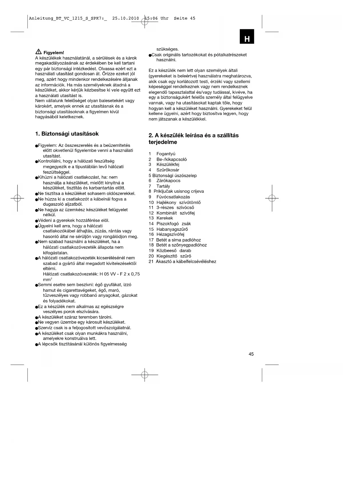 Anleitung_BT_VC_1215_S_SPK7:_ 25.10.2010 15:06 Uhr Seite 44 Figyelem!
