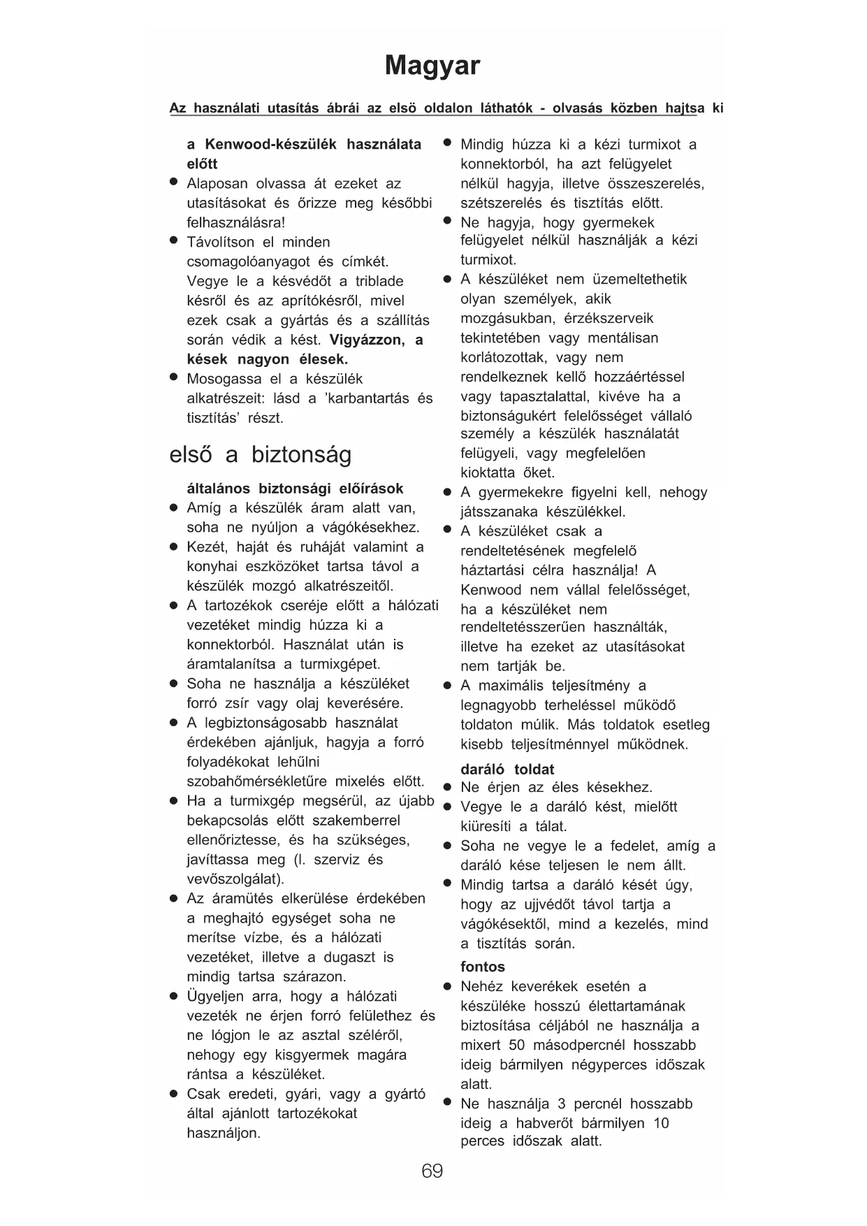 háztartási célra használja! A Kenwood nem vállal felelősséget,