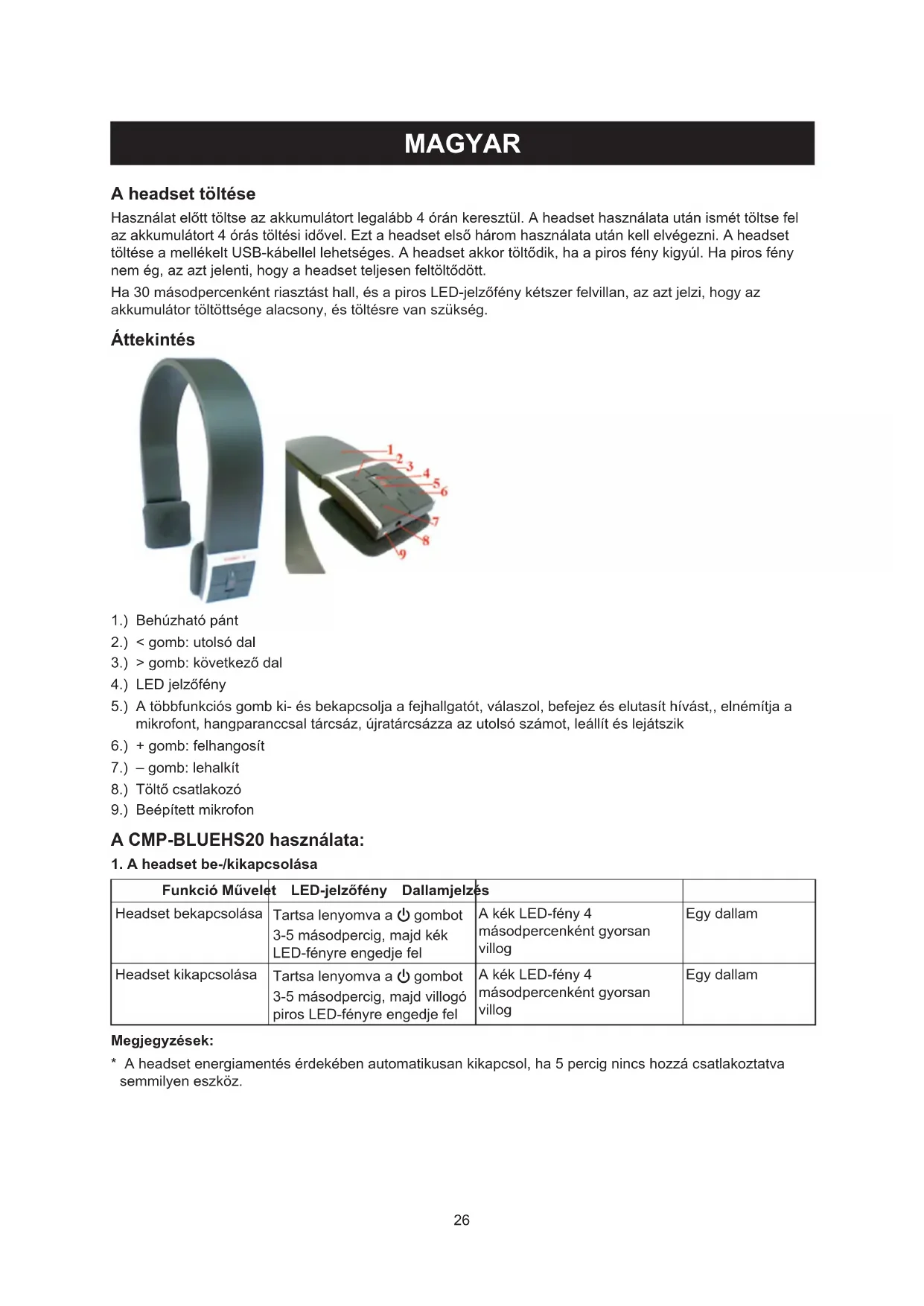 - A headset energiamentés érdekében automatikusan kikapcsol, ha 5 percig nincs hozzá csatlakoztatva semmilyen eszköz.27