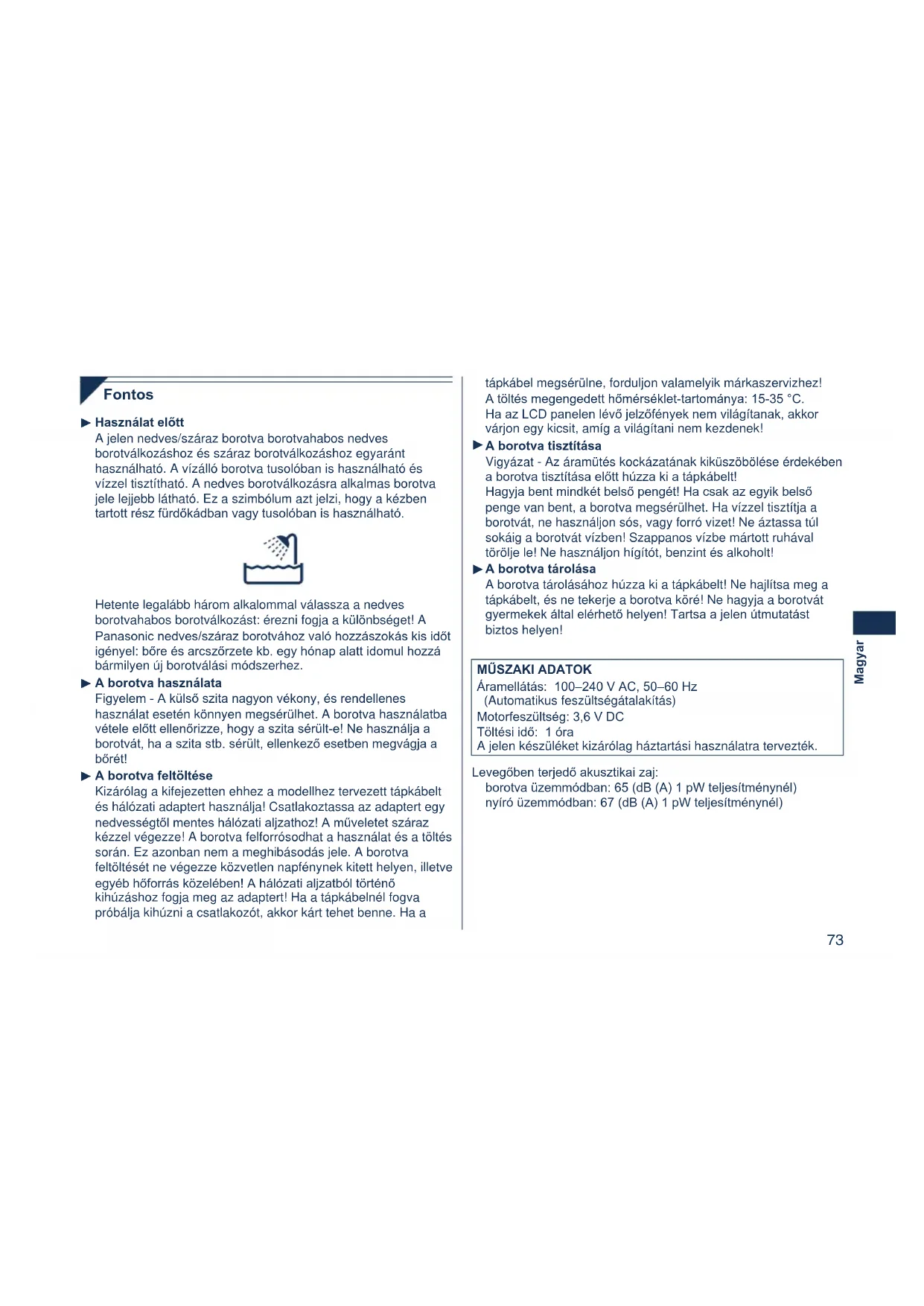 HASZNÁLATI ÚTMUTATÓ ES8103 PANASONIC