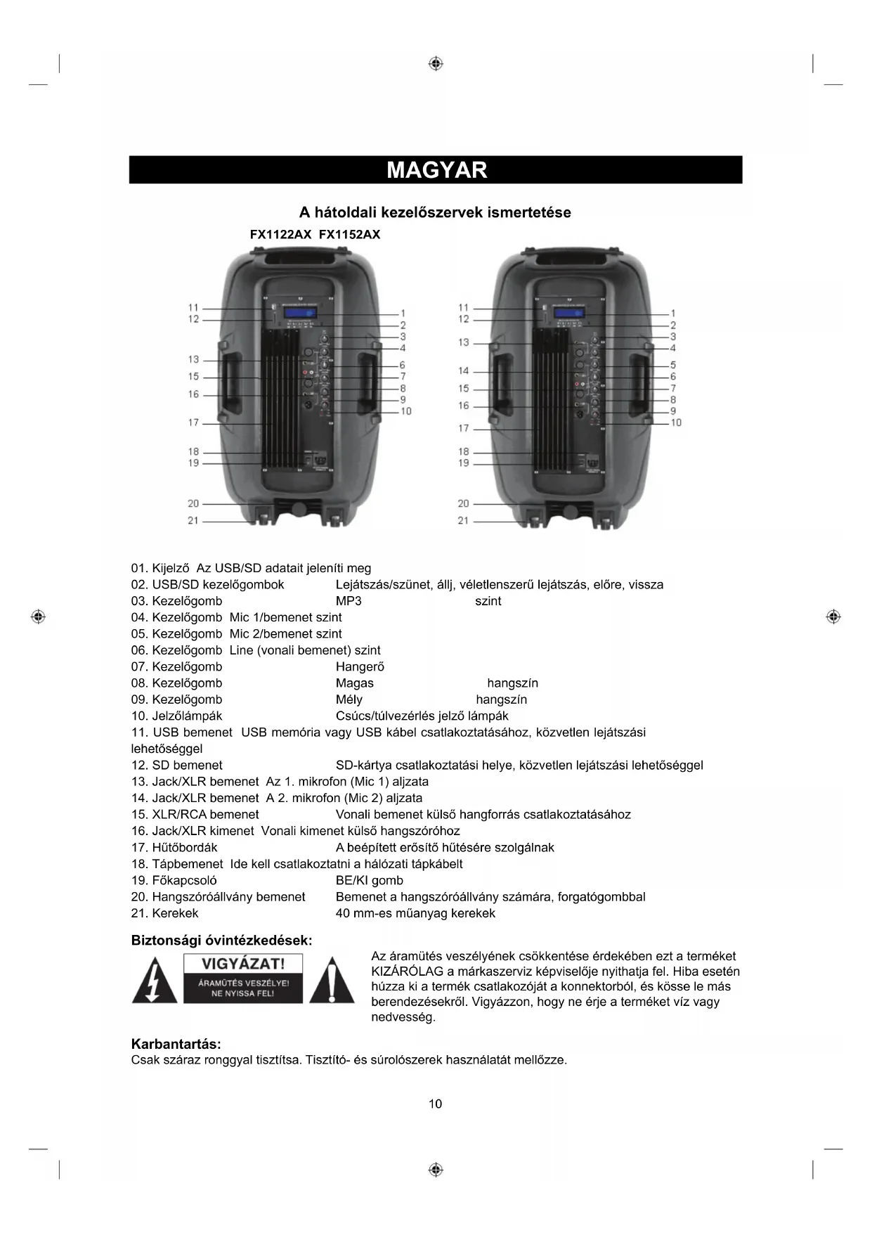18. Tápbemenet Ide kell csatlakoztatni a hálózati tápkábelt