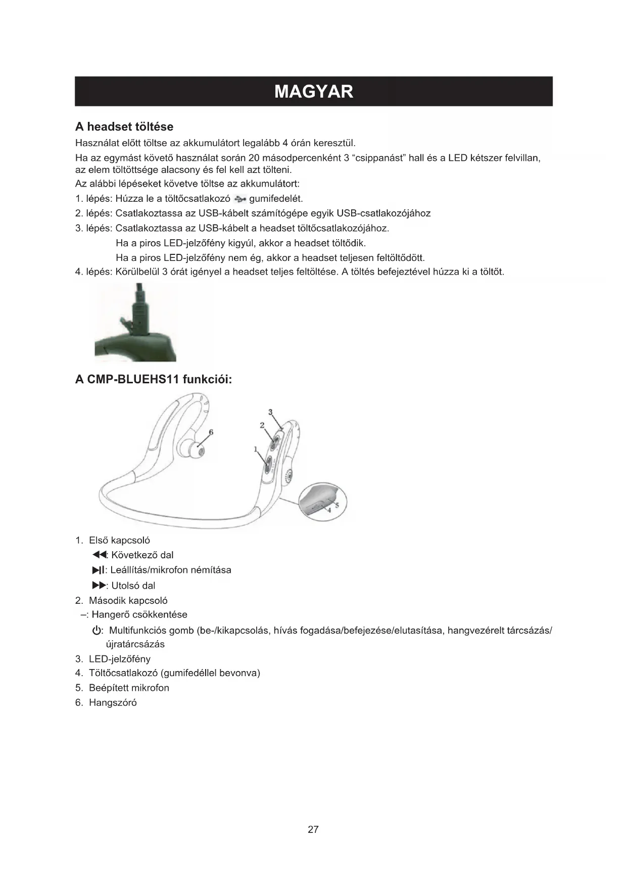 Töltse le az útmutatót a következőhöz Fülhallgató PDF formátumban ingyenesen! Találja meg kézikönyvét CMPBLUEHS11 - KONIG és vegye vissza elektronikus eszközét a kezébe. Ezen az oldalon közzé van téve az eszköze használatához szükséges összes dokumentum. CMPBLUEHS11 márka KONIG.