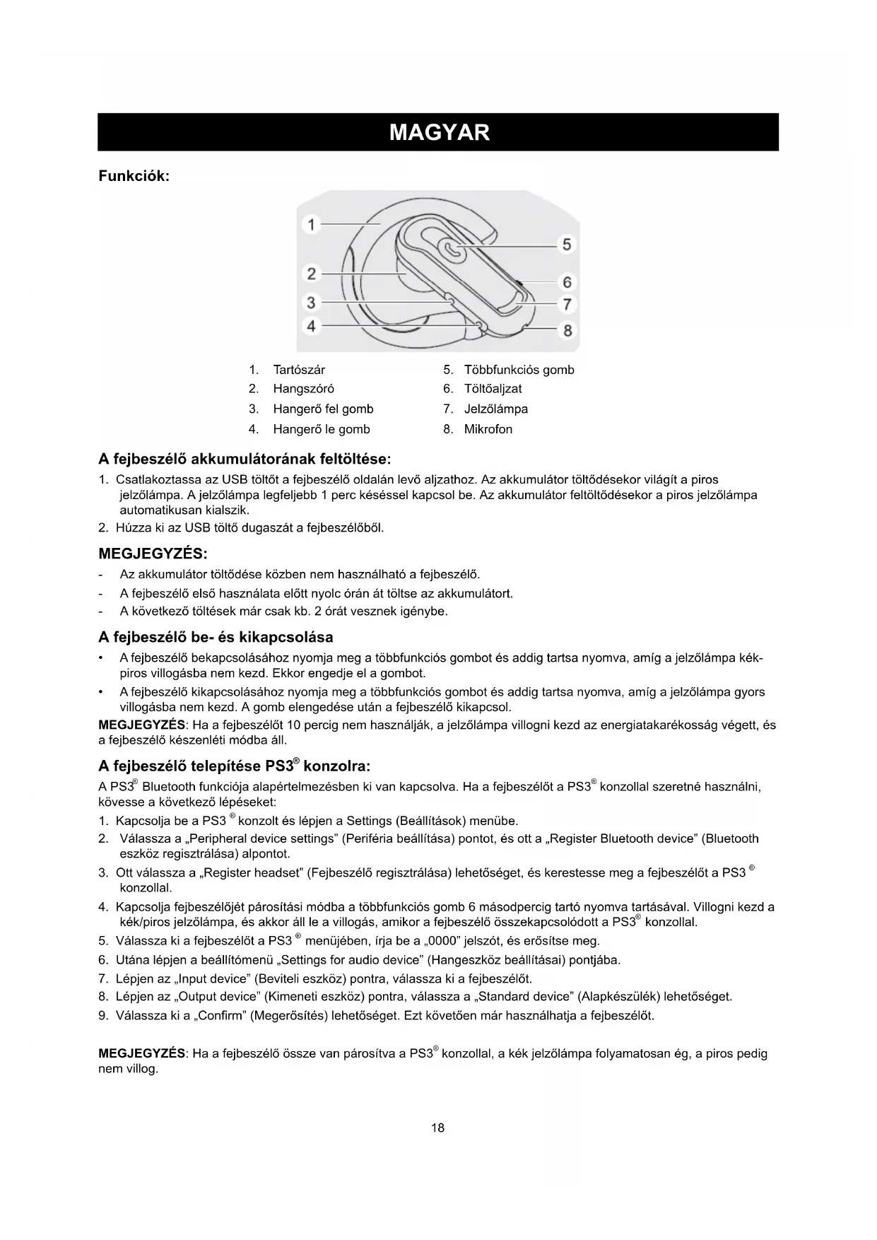 konzollal, a kék jelzőlámpa folyamatosan ég, a piros pedig nem villog.19 A fejbeszélő kipróbálása és használata: A PS3