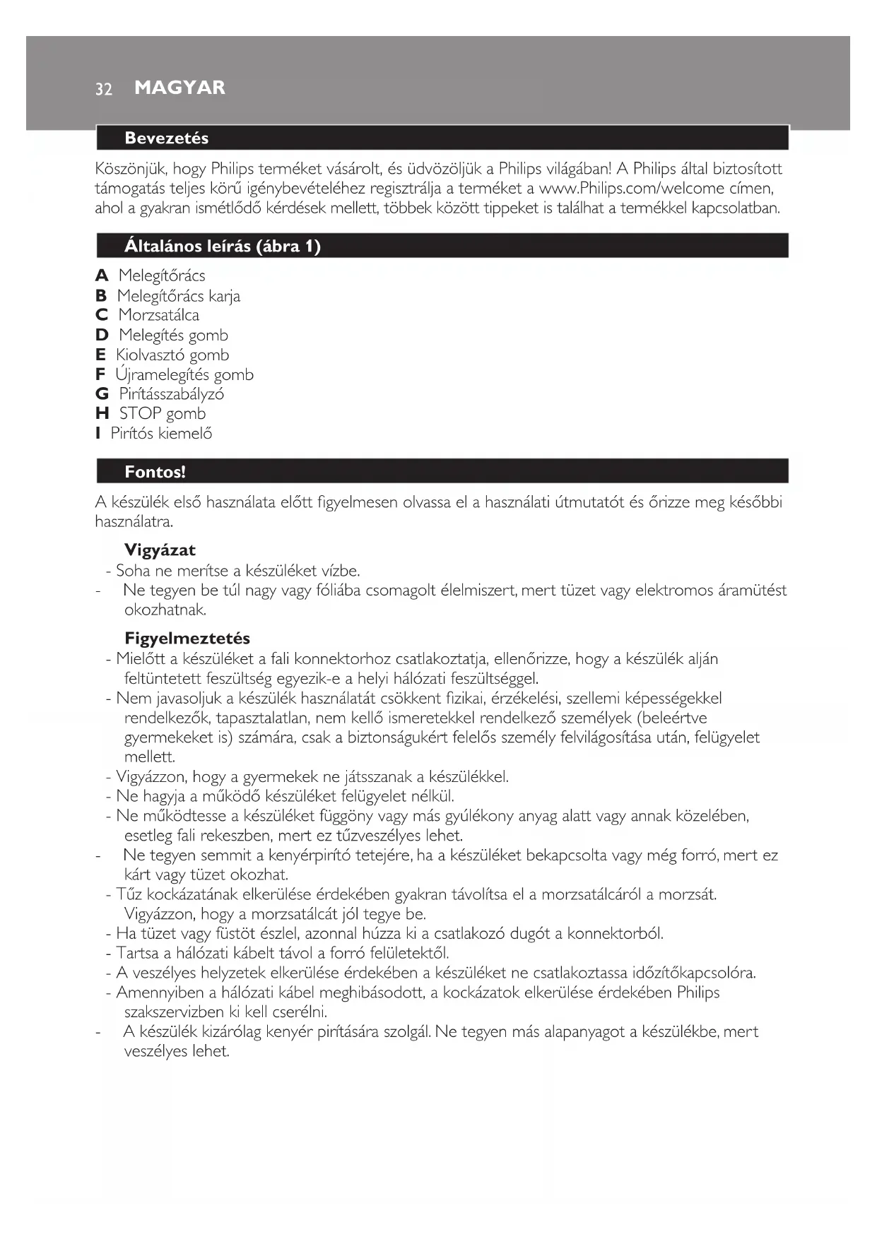 - A kenyérpirító háztartási használatra készült, és csak beltéren használható. Nem használható