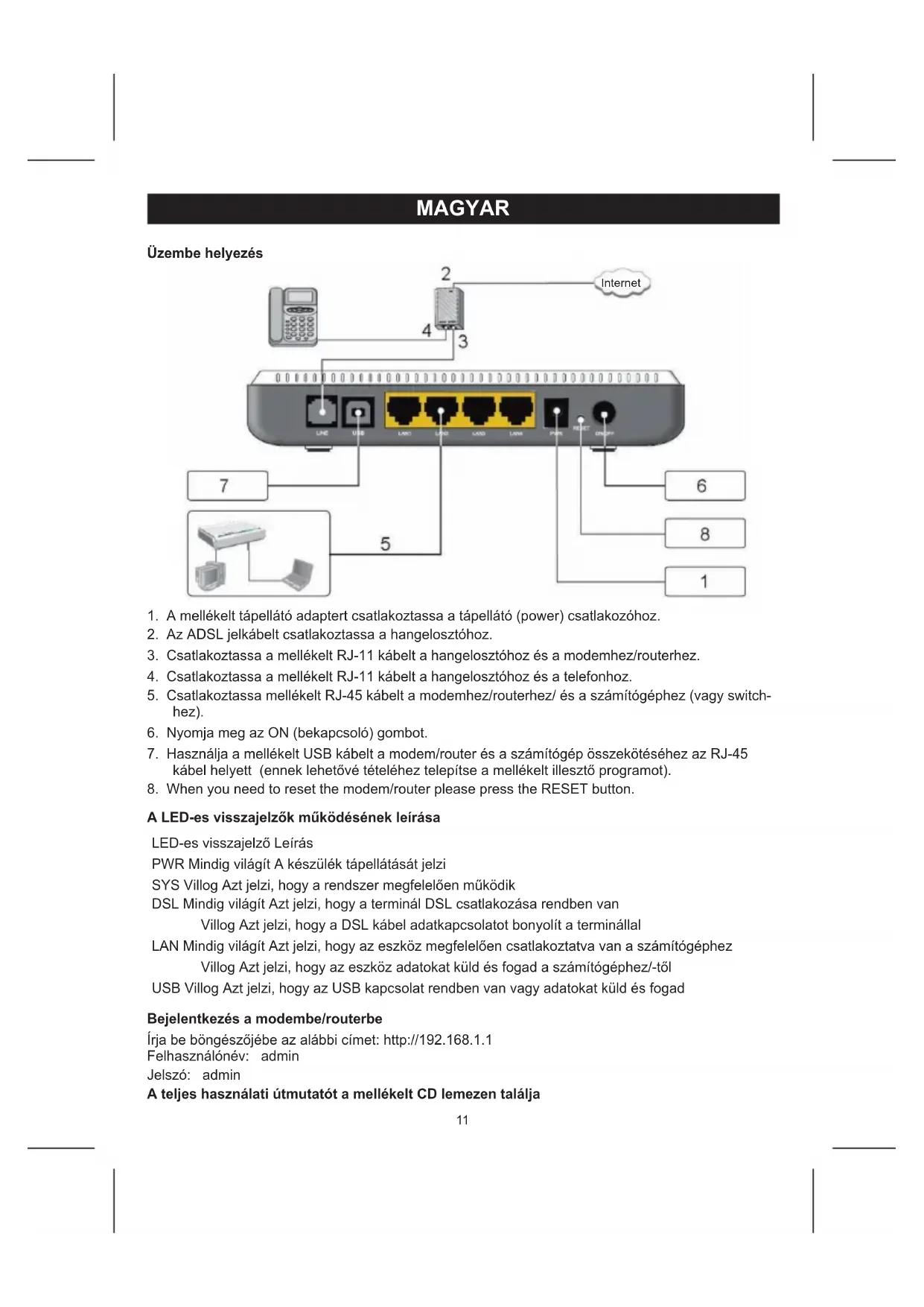 HASZNÁLATI ÚTMUTATÓ CMPADSL2ROU20 KONIG