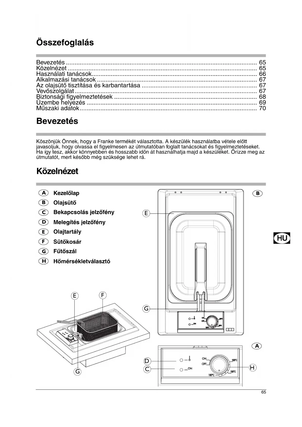 HASZNÁLATI ÚTMUTATÓ Bisel Freidora FHM 301 FR XS SP FRANKE