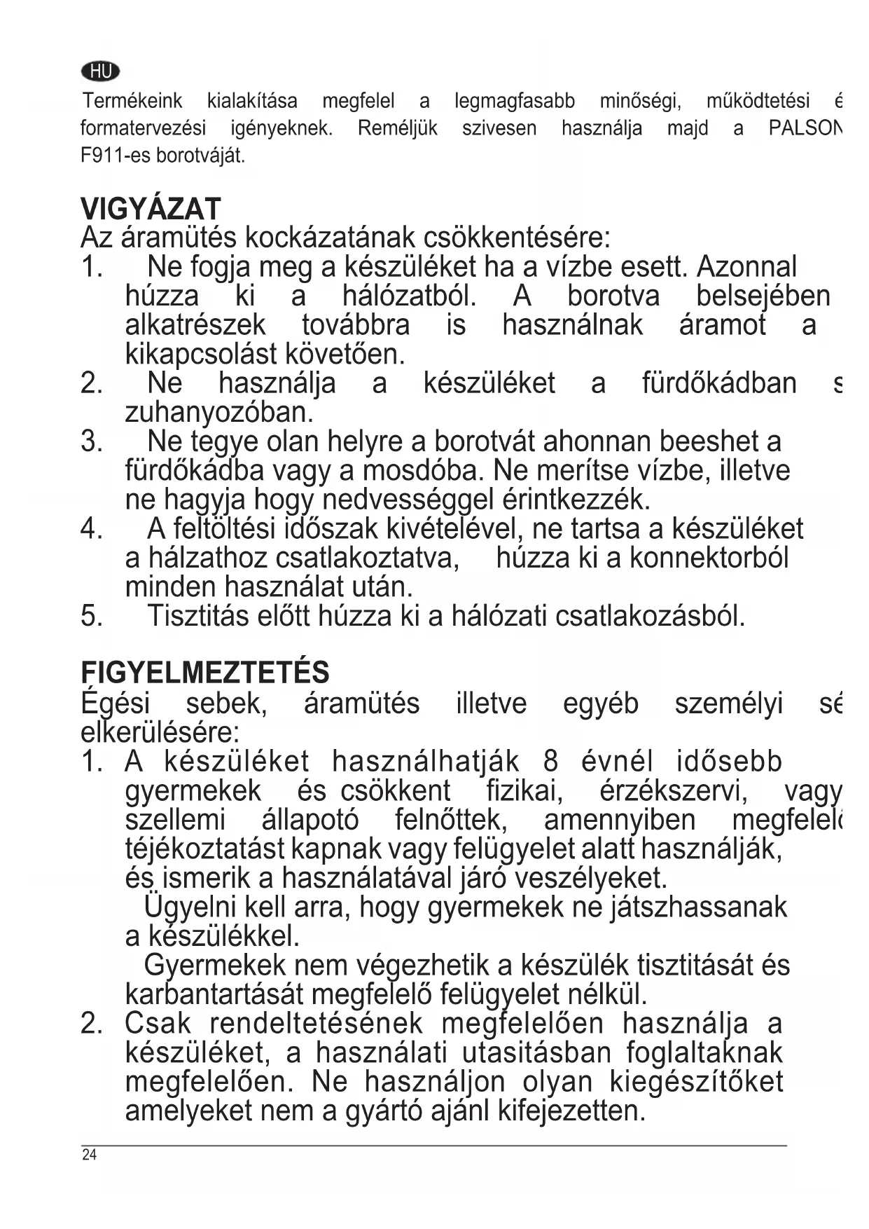 F911 - Borotva PALSON - Ingyenes használati útmutató