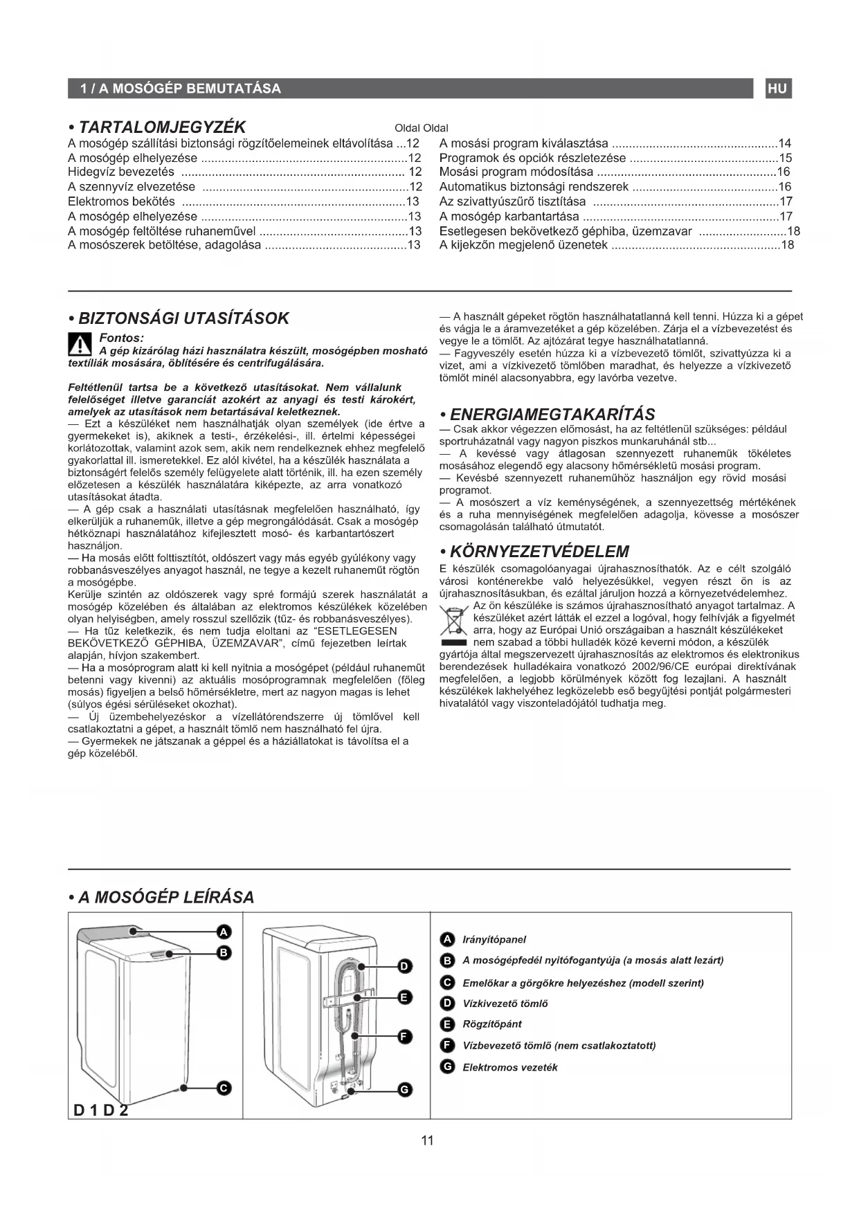 Mielőtt használná a mosógépet, gyelmesen olvassa el ezt az üzembehelyezési és használati