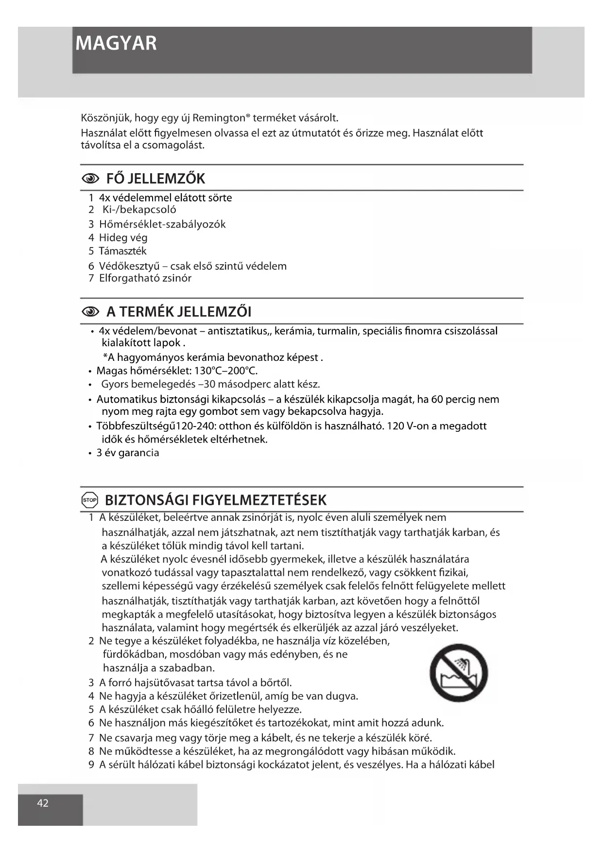 HASZNÁLATI ÚTMUTATÓ CI52W0 REMINGTON
