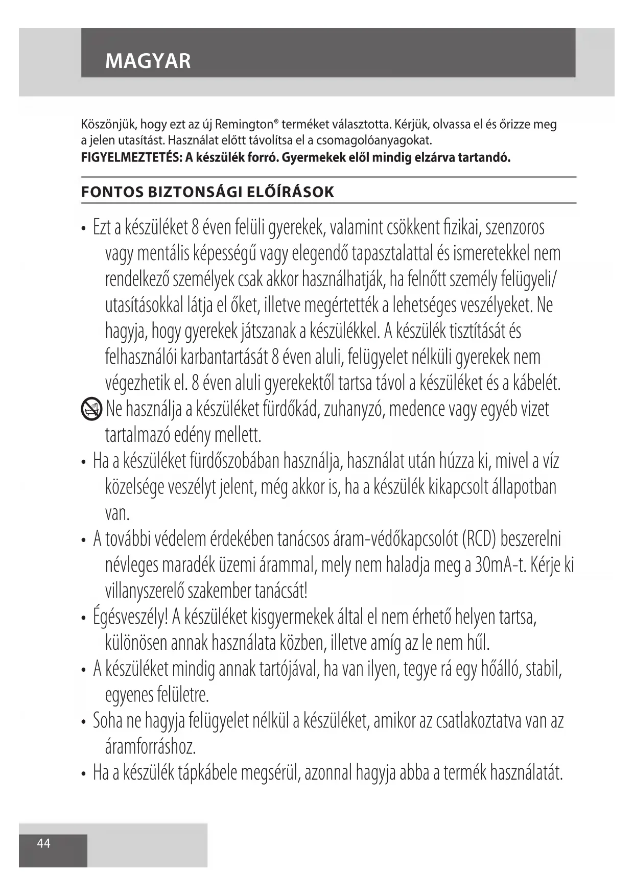 Köszönjük, hogy ezt az új Remington® terméket választotta. Kérjük, olvassa el és őrizze meg
