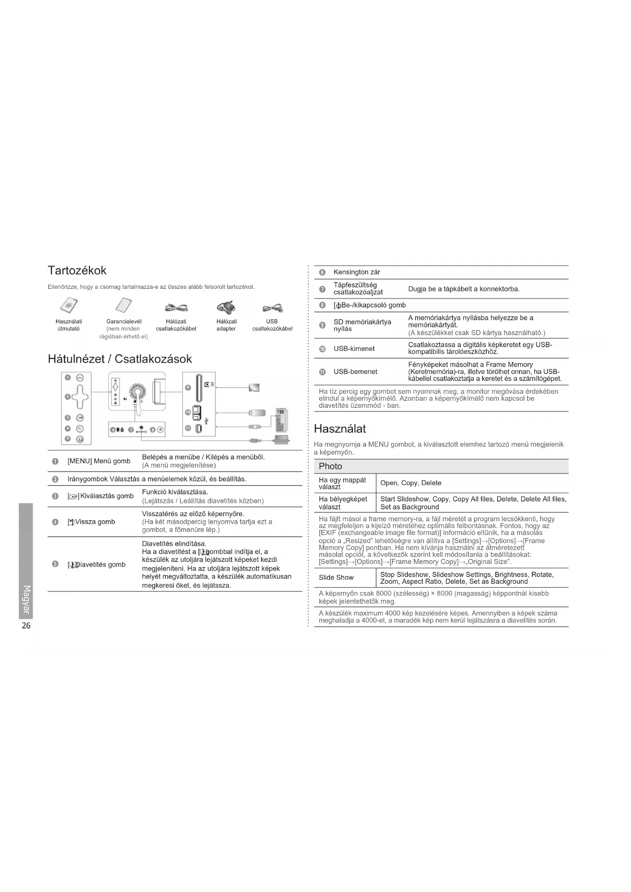 A készülék maximum 4000 kép kezelésére képes. Amennyiben a képek száma