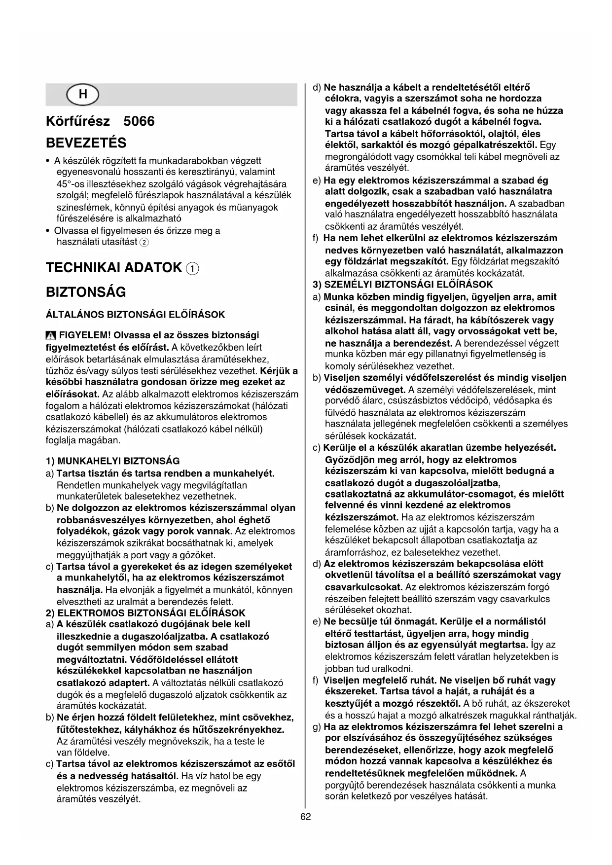 előírásokat. Az alább alkalmazott elektromos kéziszerszám