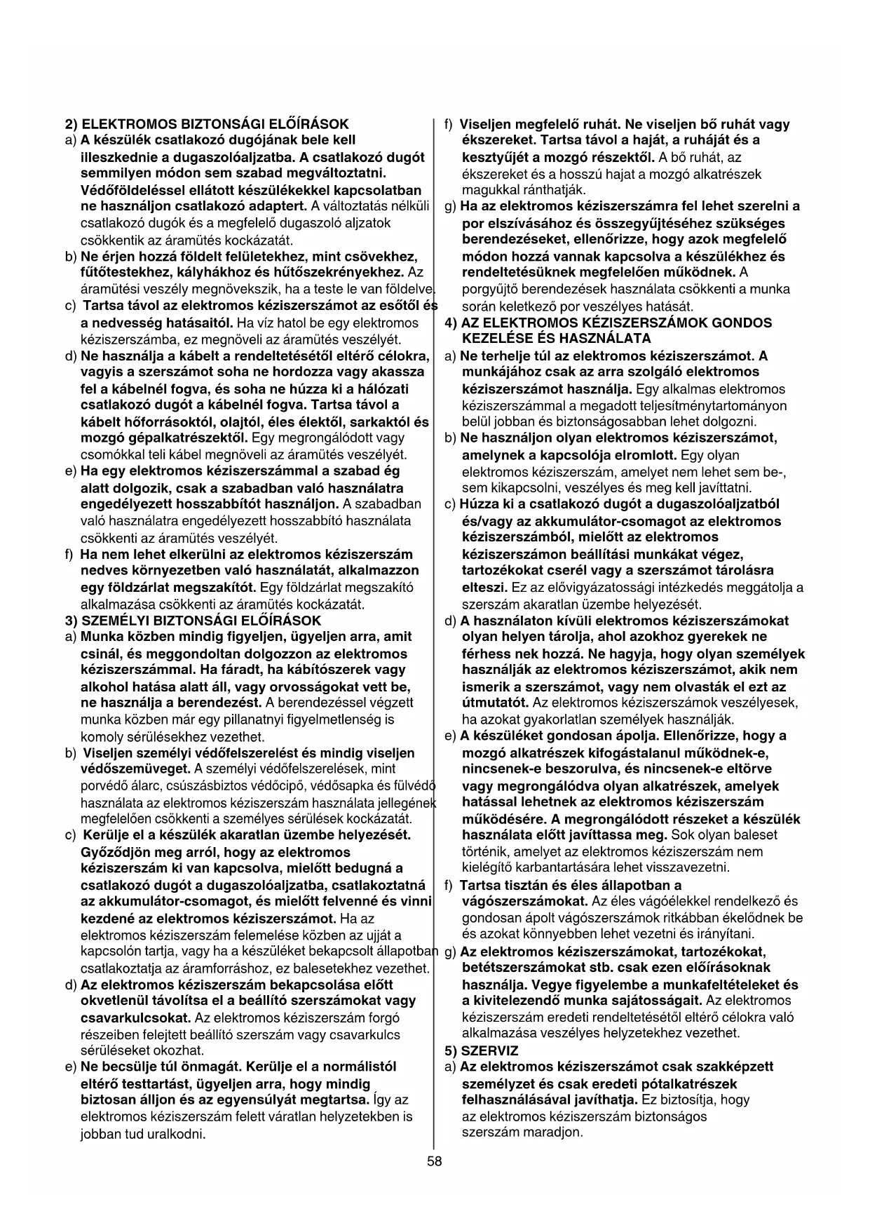 előírásokat. Az alább alkalmazott elektromos kéziszerszám