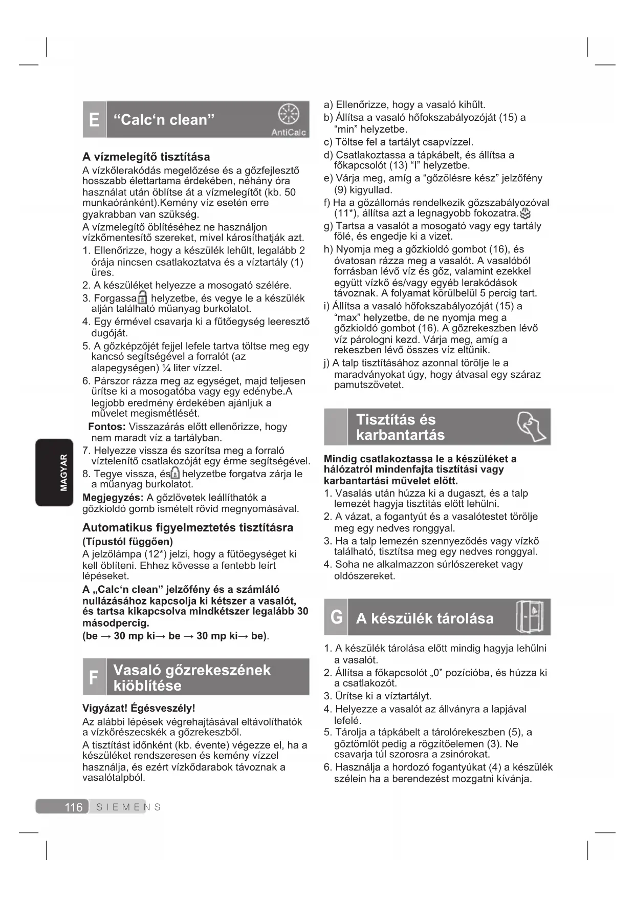 • Tisztítsa ki a vízmelegítőt a „Calc‘n