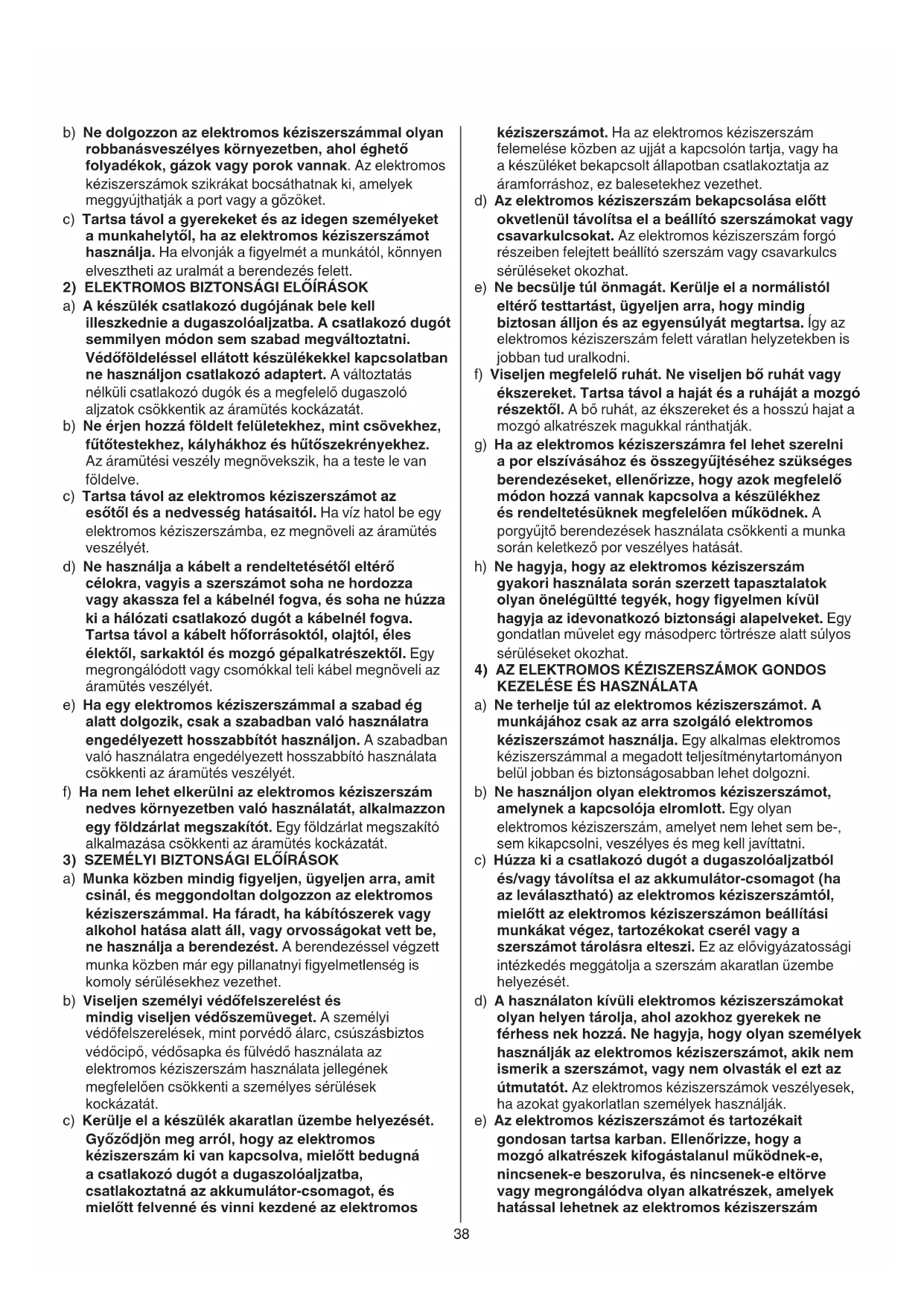 4) AZ ELEKTROMOS KÉZISZERSZÁMOK GONDOS KEZELÉSE ÉS HASZNÁLATA