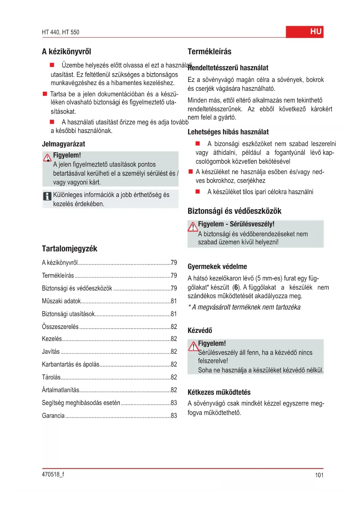 HASZNÁLATI ÚTMUTATÓ HT 550 AL-KO