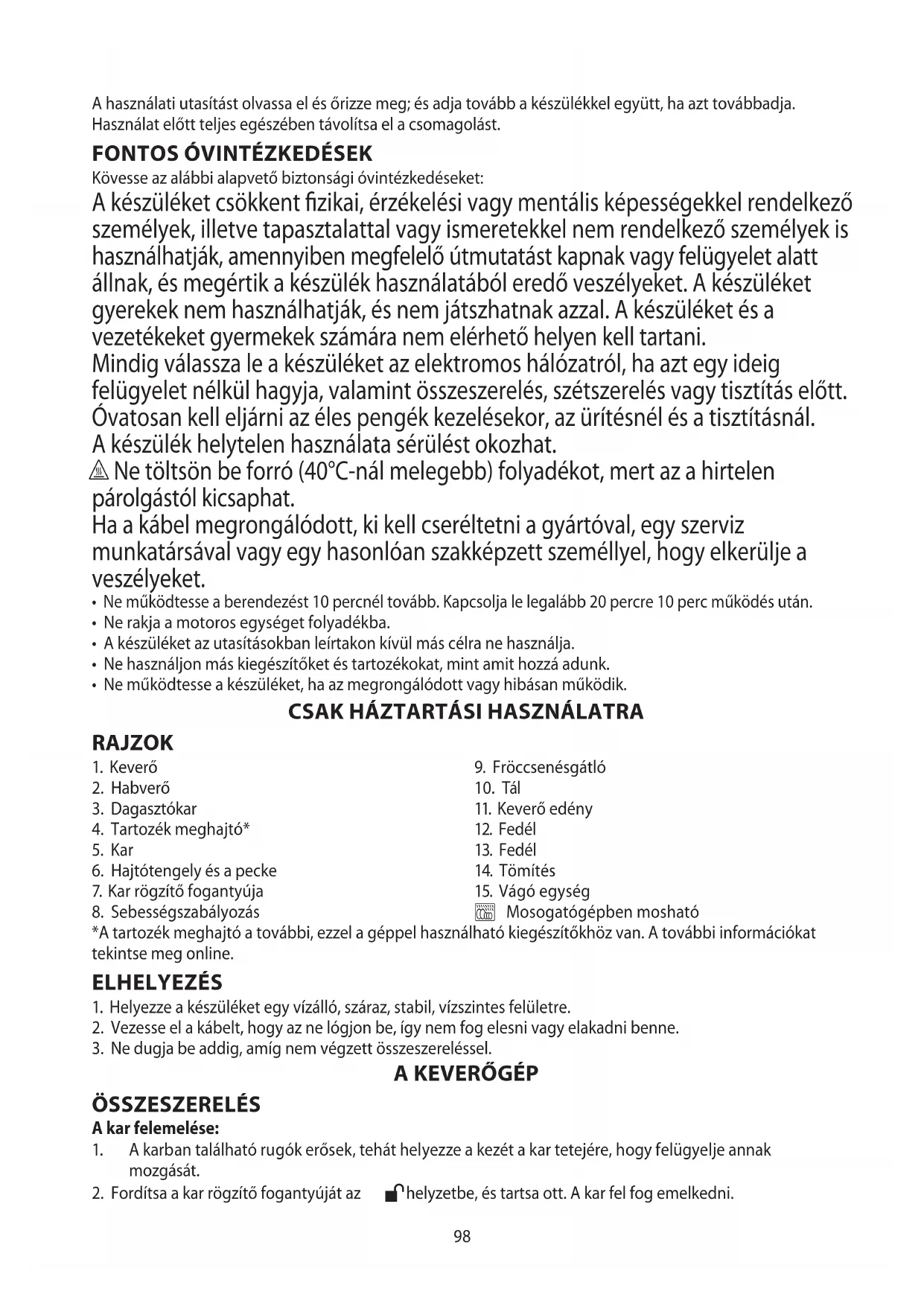 A használati utasítást olvassa el és őrizze meg; és adja tovább a készülékkel együtt, ha azt továbbadja.