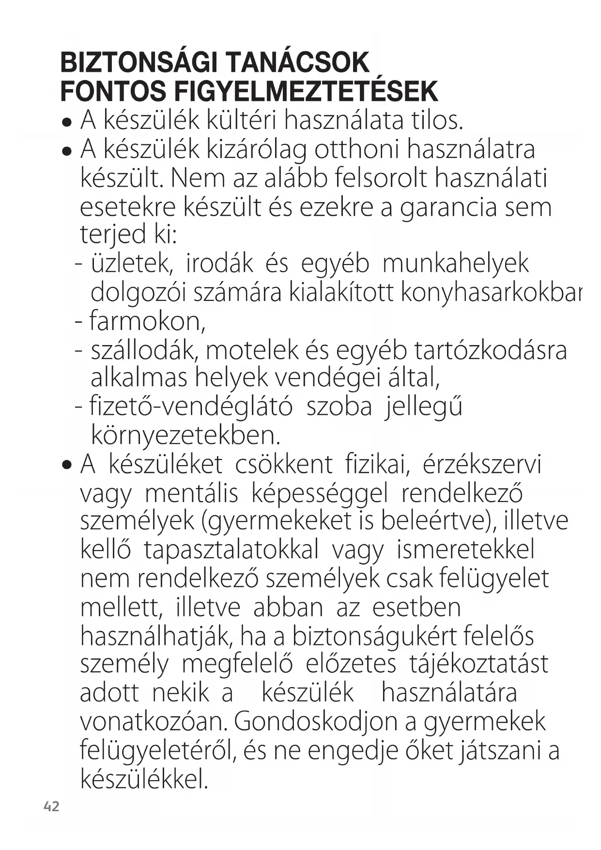 A készülék kültéri használata tilos.