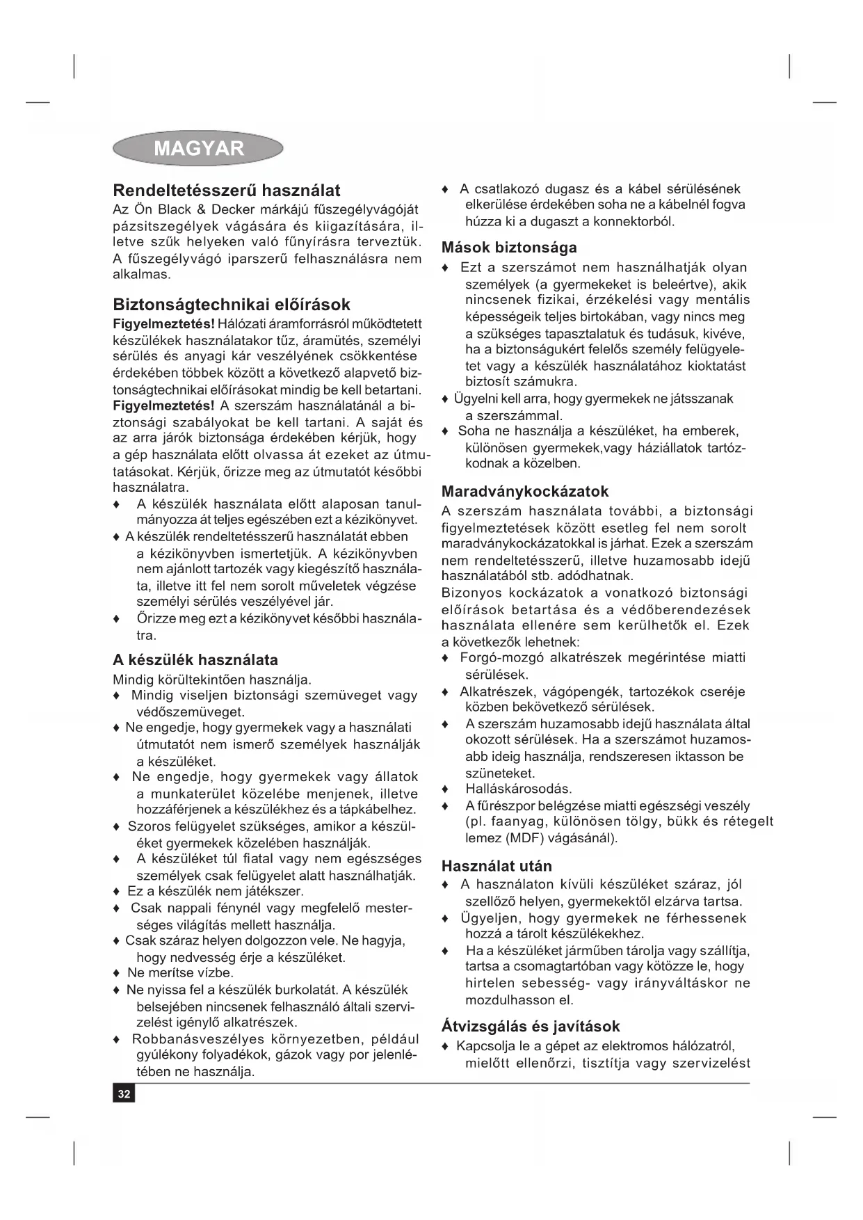 Magyar (Fordítás az eredeti kezelési utasítás alapjan készült) 32