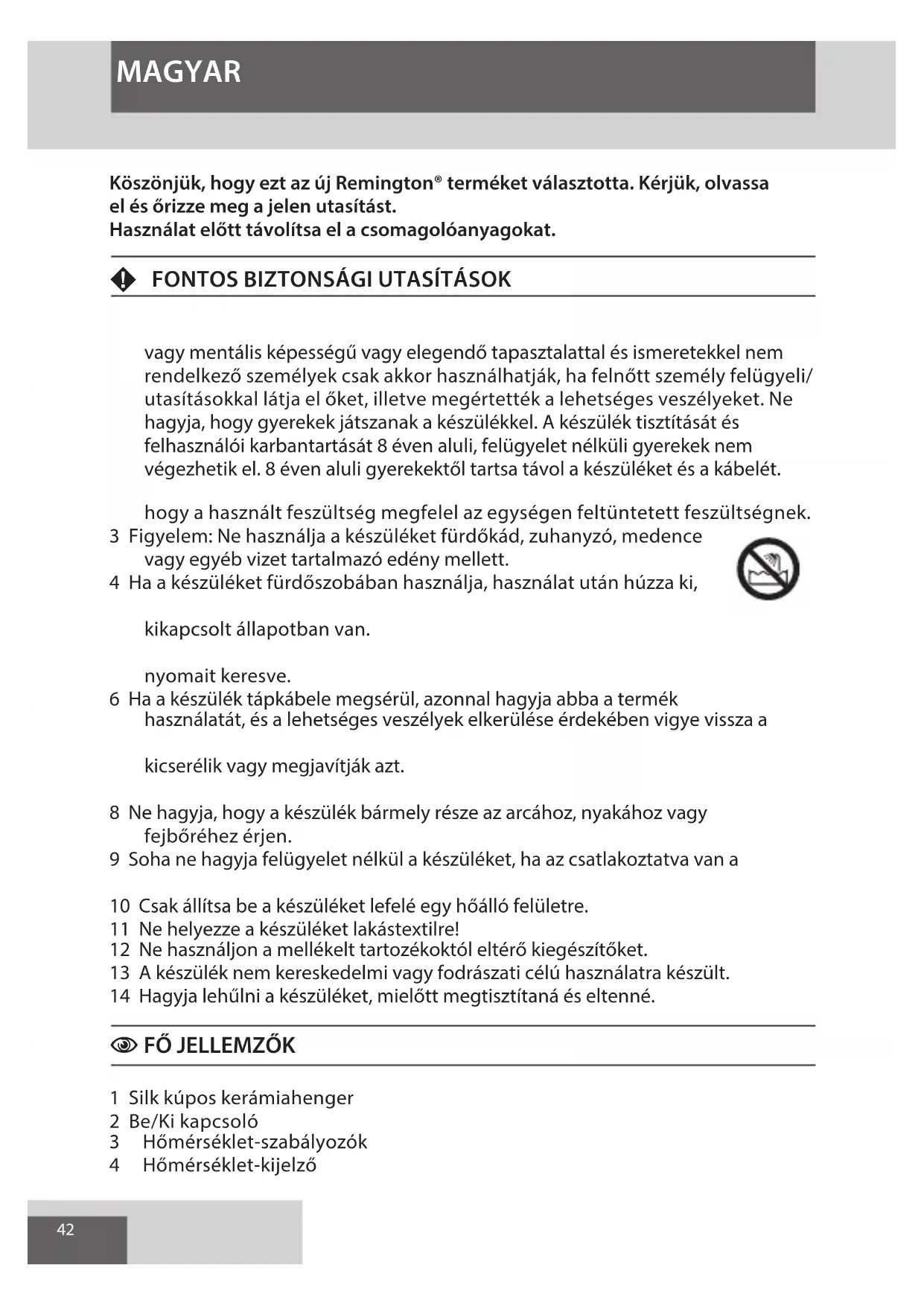 3 Figyelem: Ne használja a készüléket fürdőkád, zuhanyzó, medence