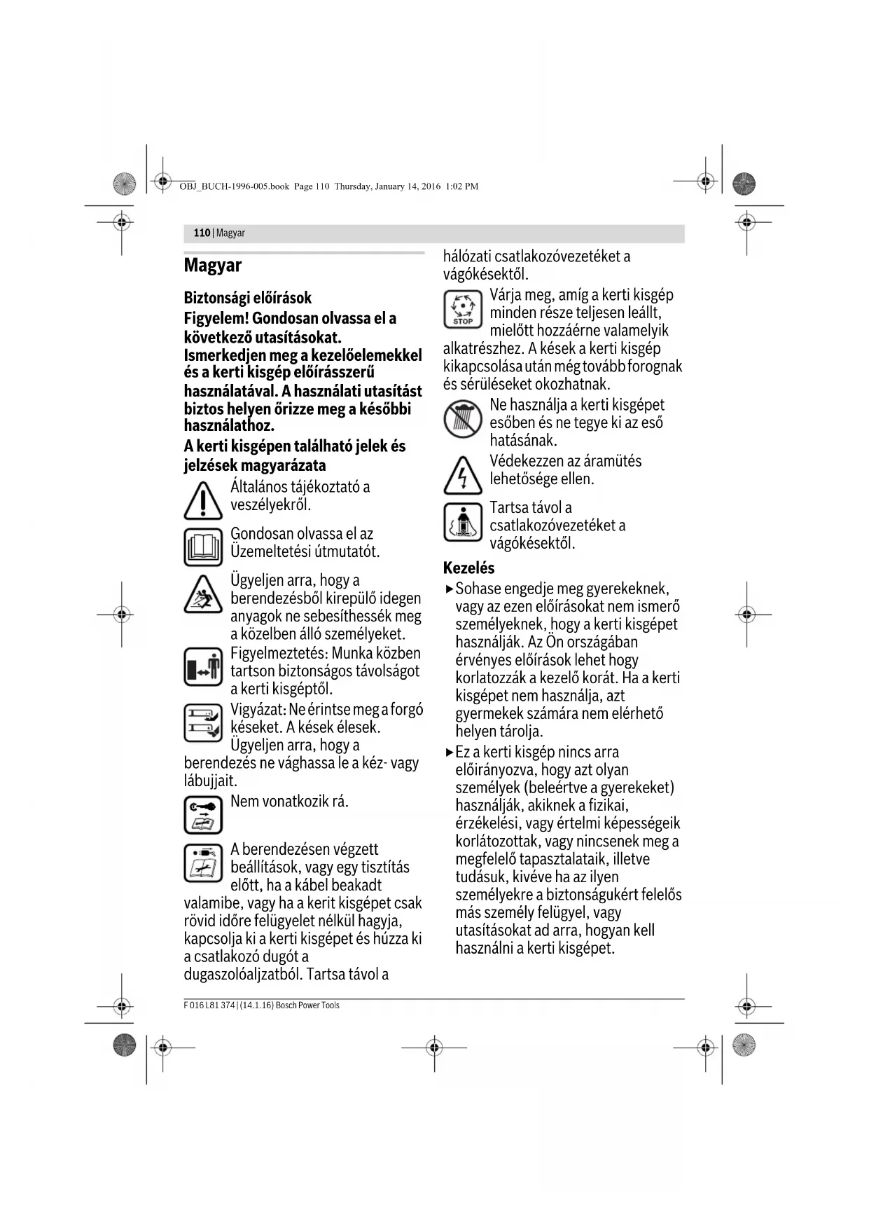 OBJ_BUCH-1996-005.book Page 109 Thursday, January 14, 2016 1:02 PM110 | Magyar F 016 L81 374 | (14.1.16) Bosch Power Tools Magyar