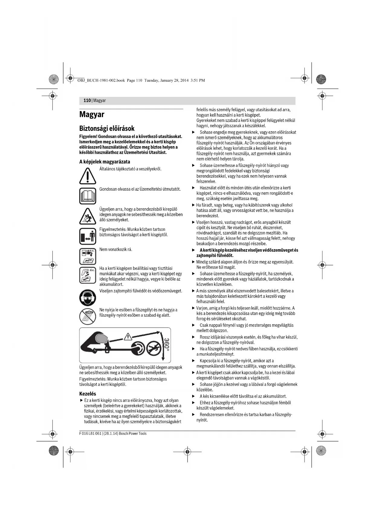 OBJ_BUCH-1981-002.book Page 109 Tuesday, January 28, 2014 3:51 PM110 | Magyar F 016 L81 061 | (28.1.14) Bosch Power Tools Magyar