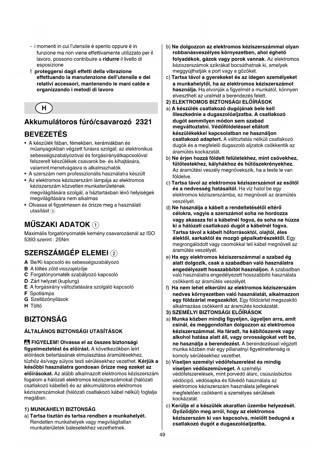 előírásokat. Az alább alkalmazott elektromos kéziszerszám