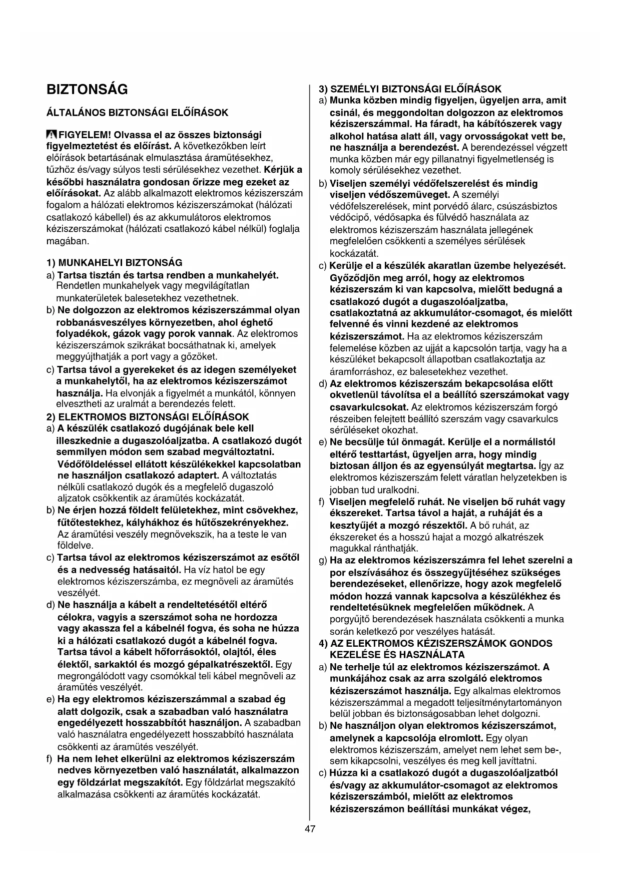 előírásokat. Az alább alkalmazott elektromos kéziszerszám