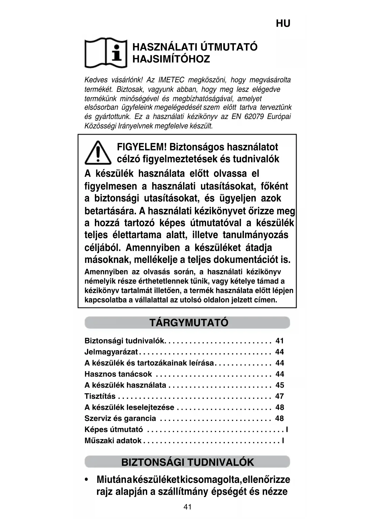 Kedves vásárlónk! Az IMETEC megköszöni, hogy megvásárolta