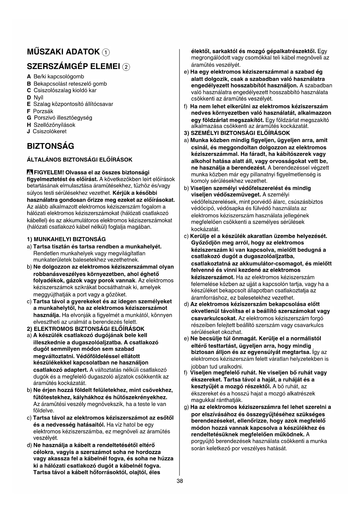 Az alább alkalmazott elektromos kéziszerszám fogalom a