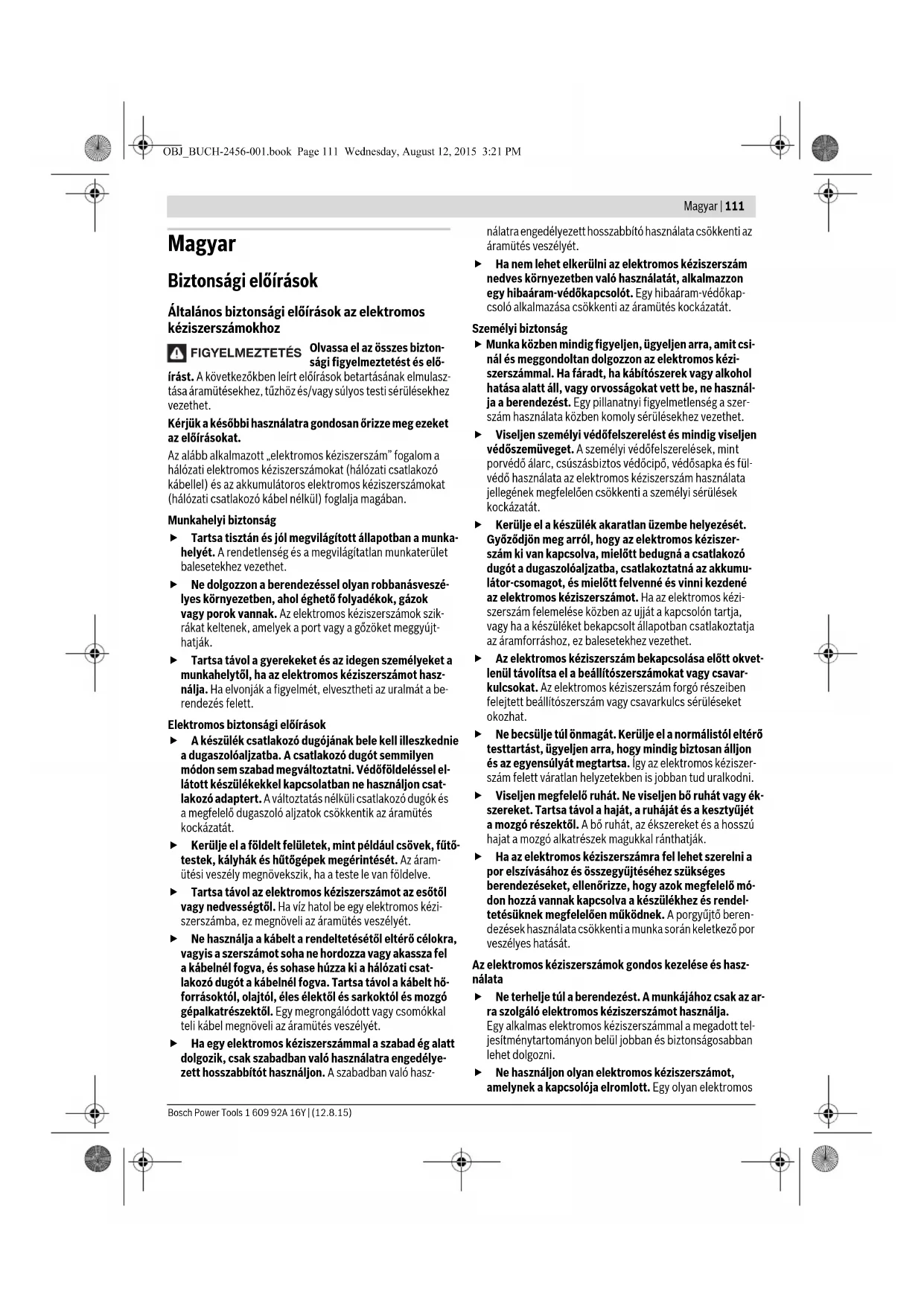 OBJ_BUCH-2456-001.book Page 110 Wednesday, August 12, 2015 3:21 PMMagyar | 111 Bosch Power Tools 1 609 92A 16Y | (12.8.15) Magyar