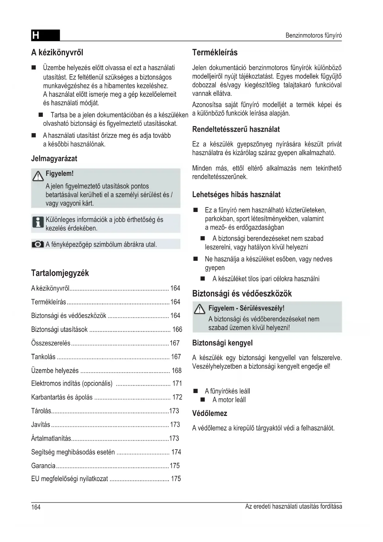 Jelen dokumentáció benzinmotoros fűnyírók különböző