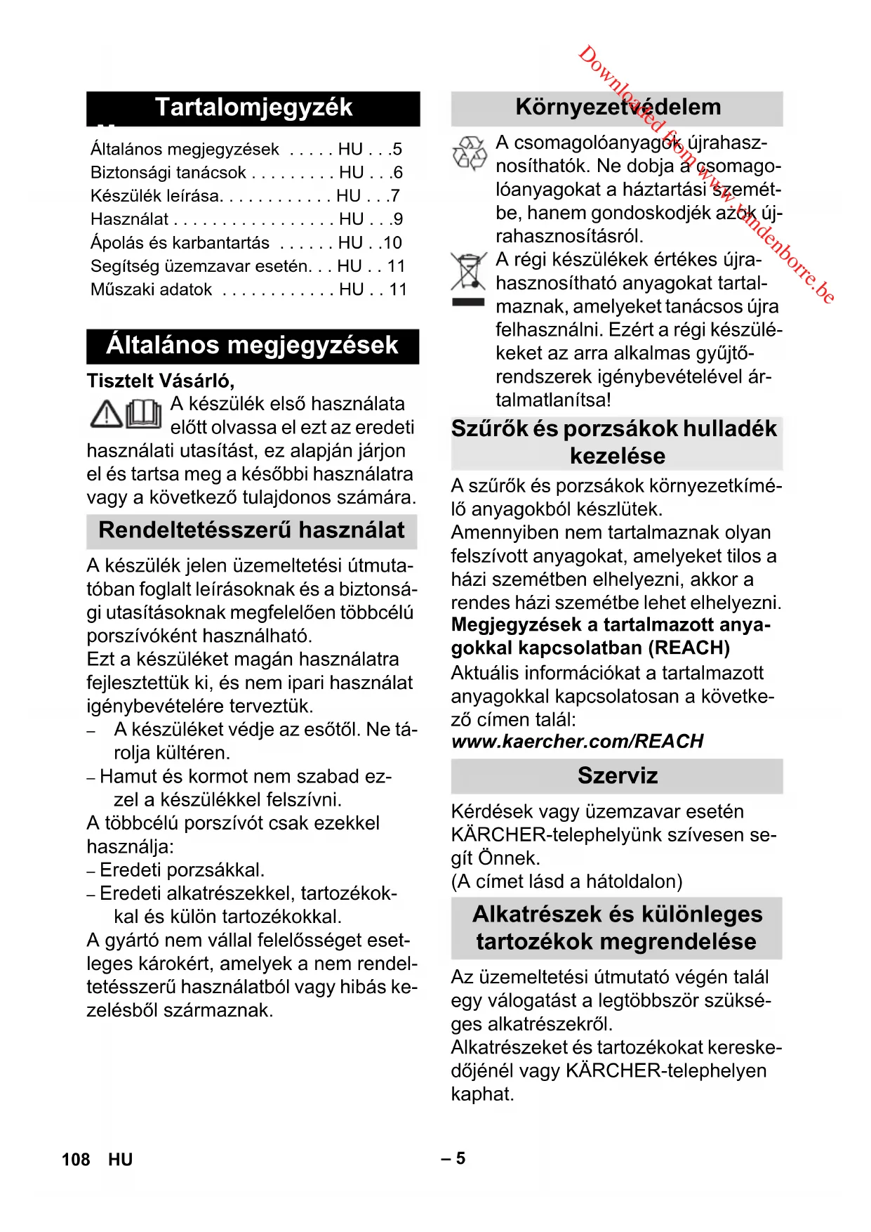 108 HU Downloaded from www.vandenborre.be– 6