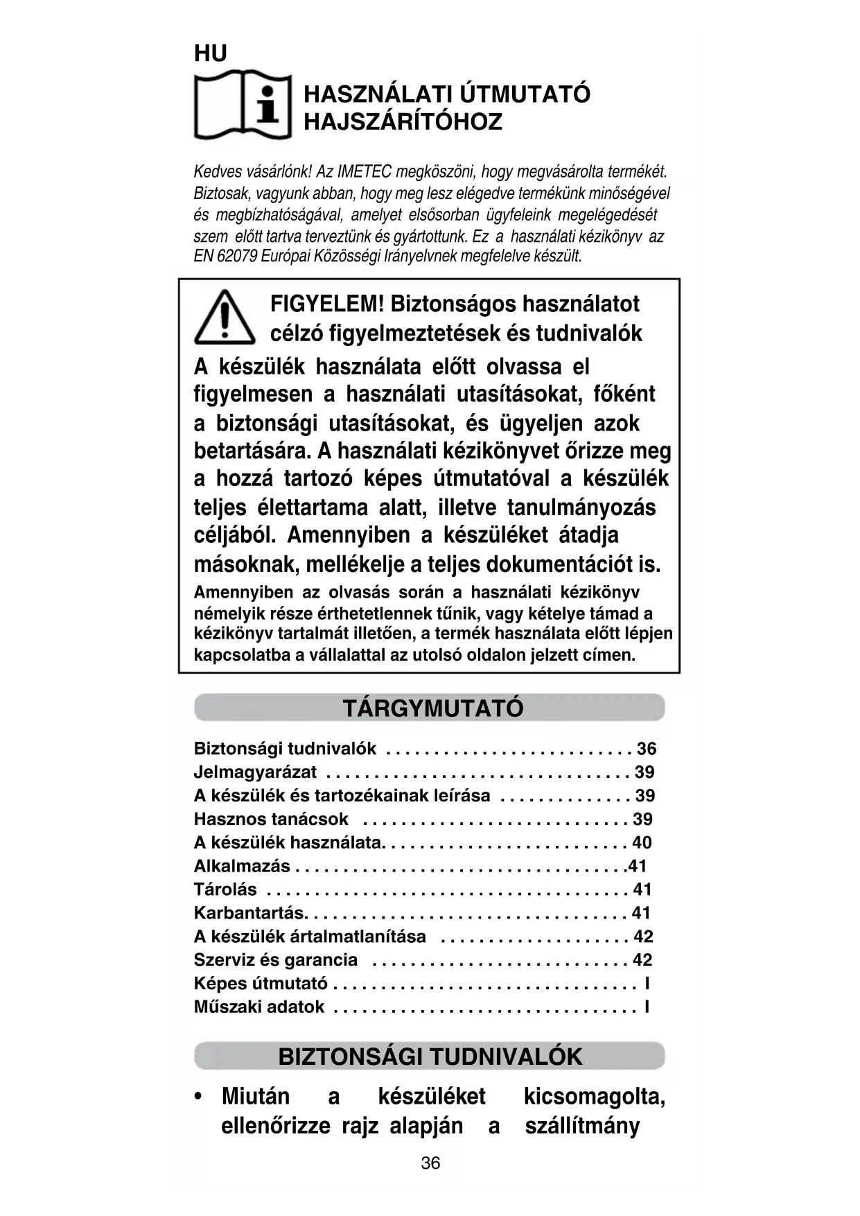 Kedves vásárlónk! Az IMETEC megköszöni, hogy megvásárolta termékét.