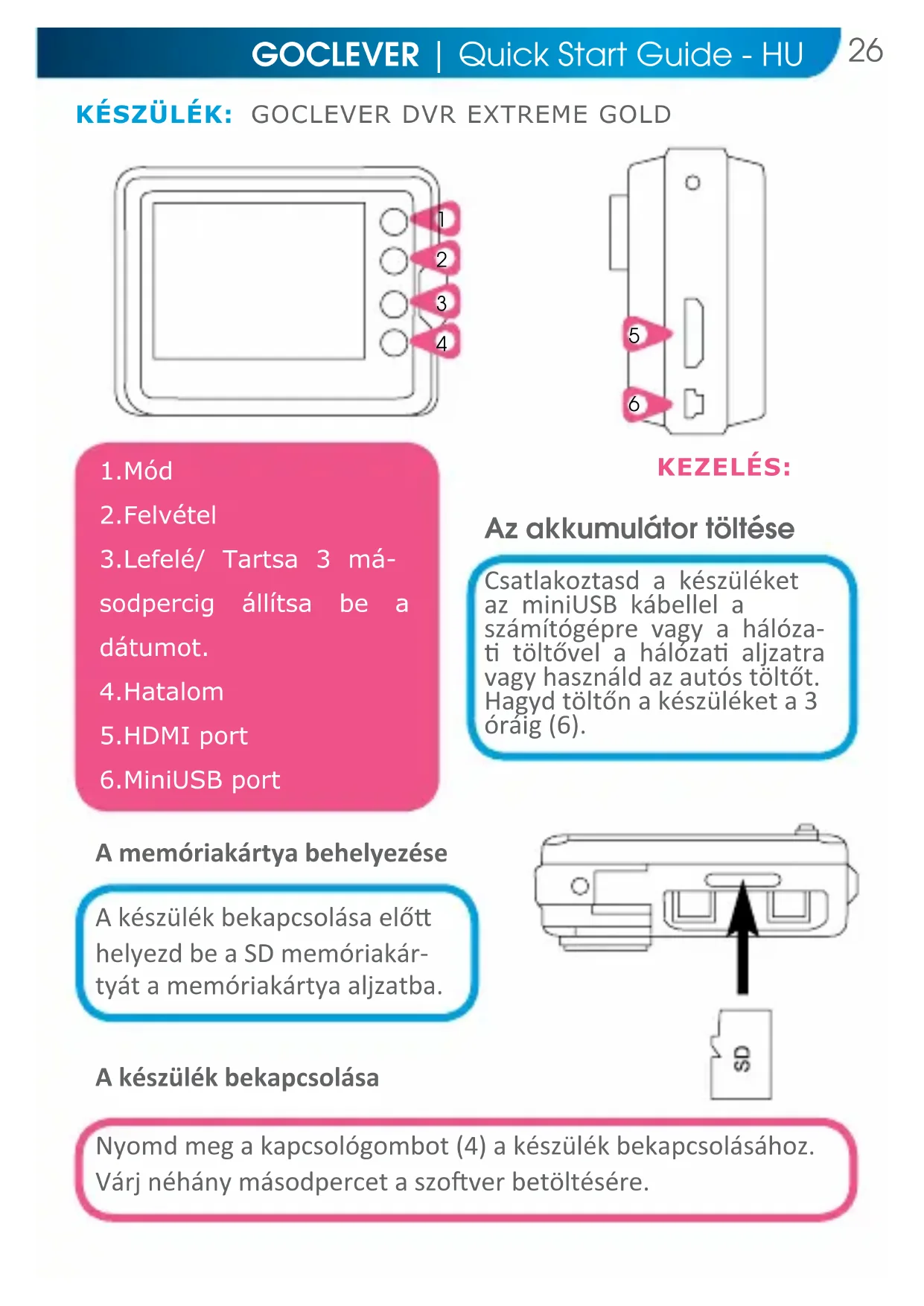 HASZNÁLATI ÚTMUTATÓ DVR Extreme gold GOCLEVER