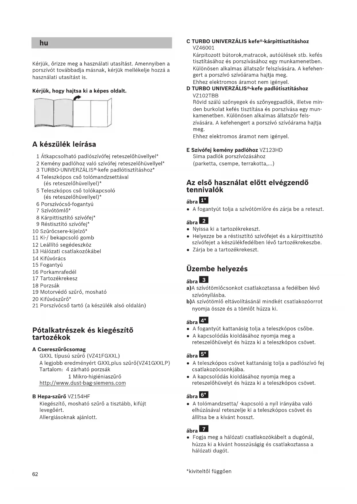 HASZNÁLATI ÚTMUTATÓ VSZ5XTR2CH SIEMENS