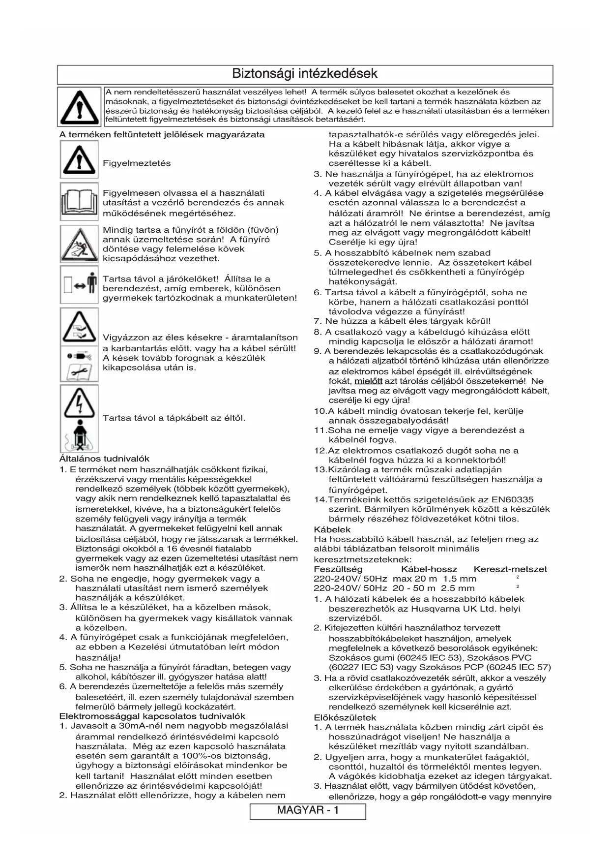 3. Ne használja a fűnyírógépet, ha az elektromos