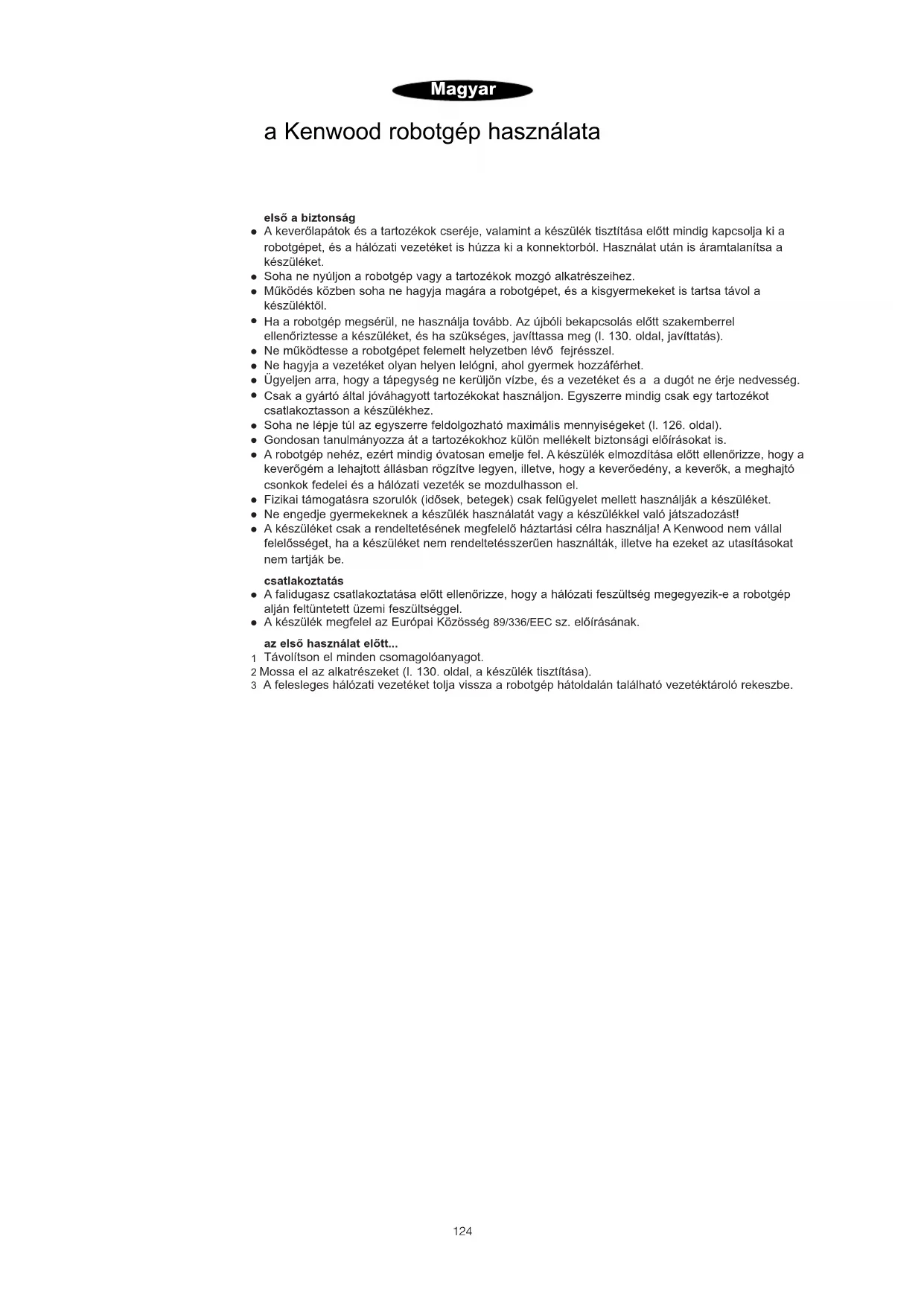 oldal 124 használati utasítás Köszöntjük a Kenwood vásárlói körében! Az Ön által kiválasztott robotgép a csatlakoztatható