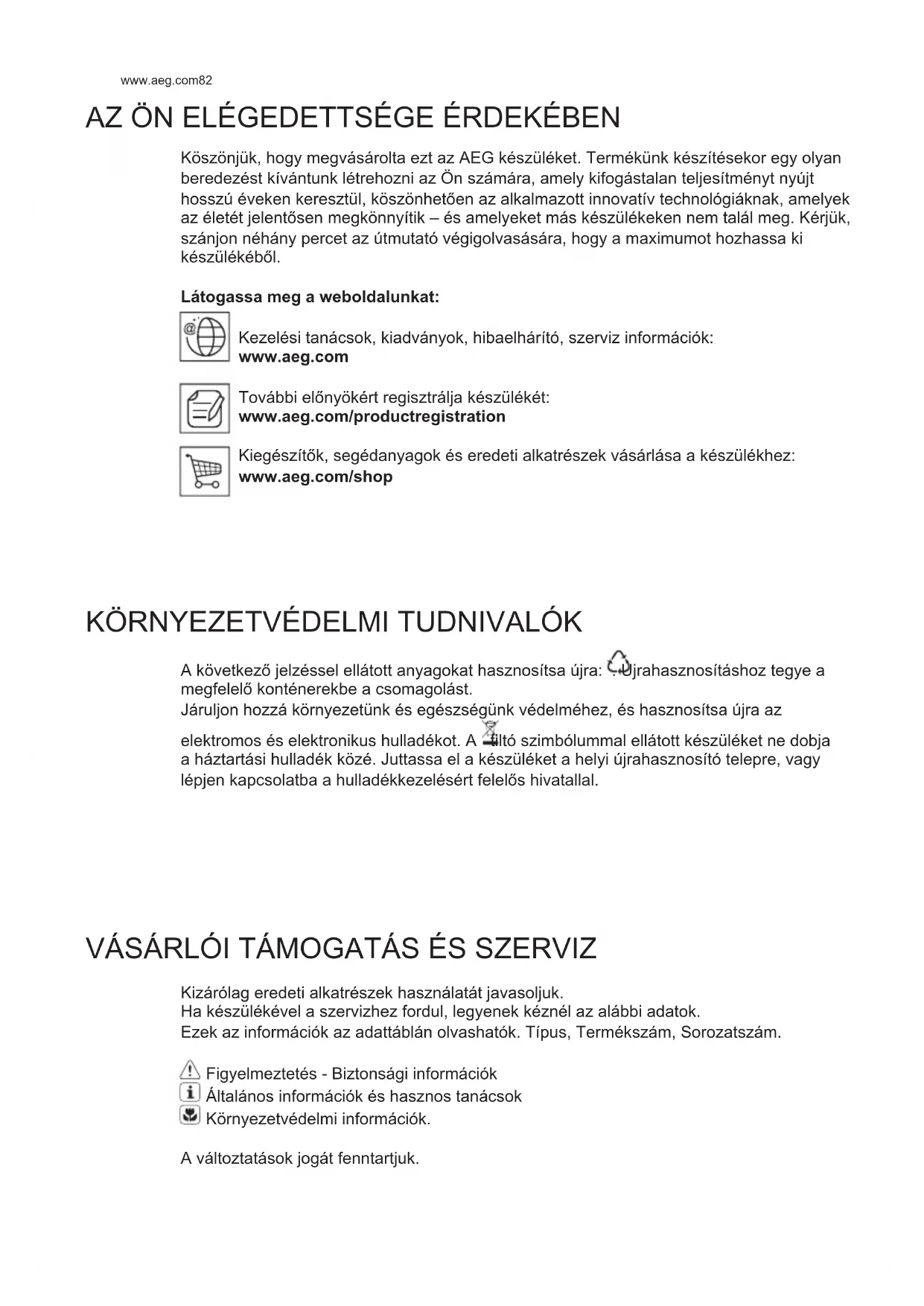 Köszönjük, hogy megvásárolta ezt az AEG készüléket. Termékünk készítésekor egy olyan