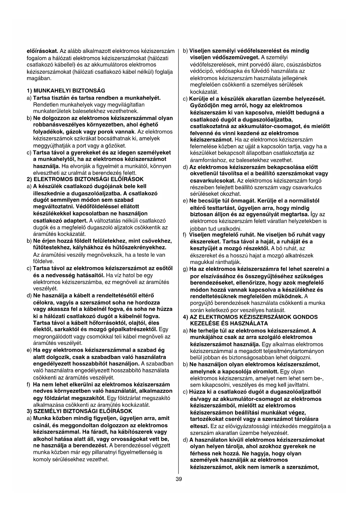 előírásokat. Az alább alkalmazott elektromos kéziszerszám