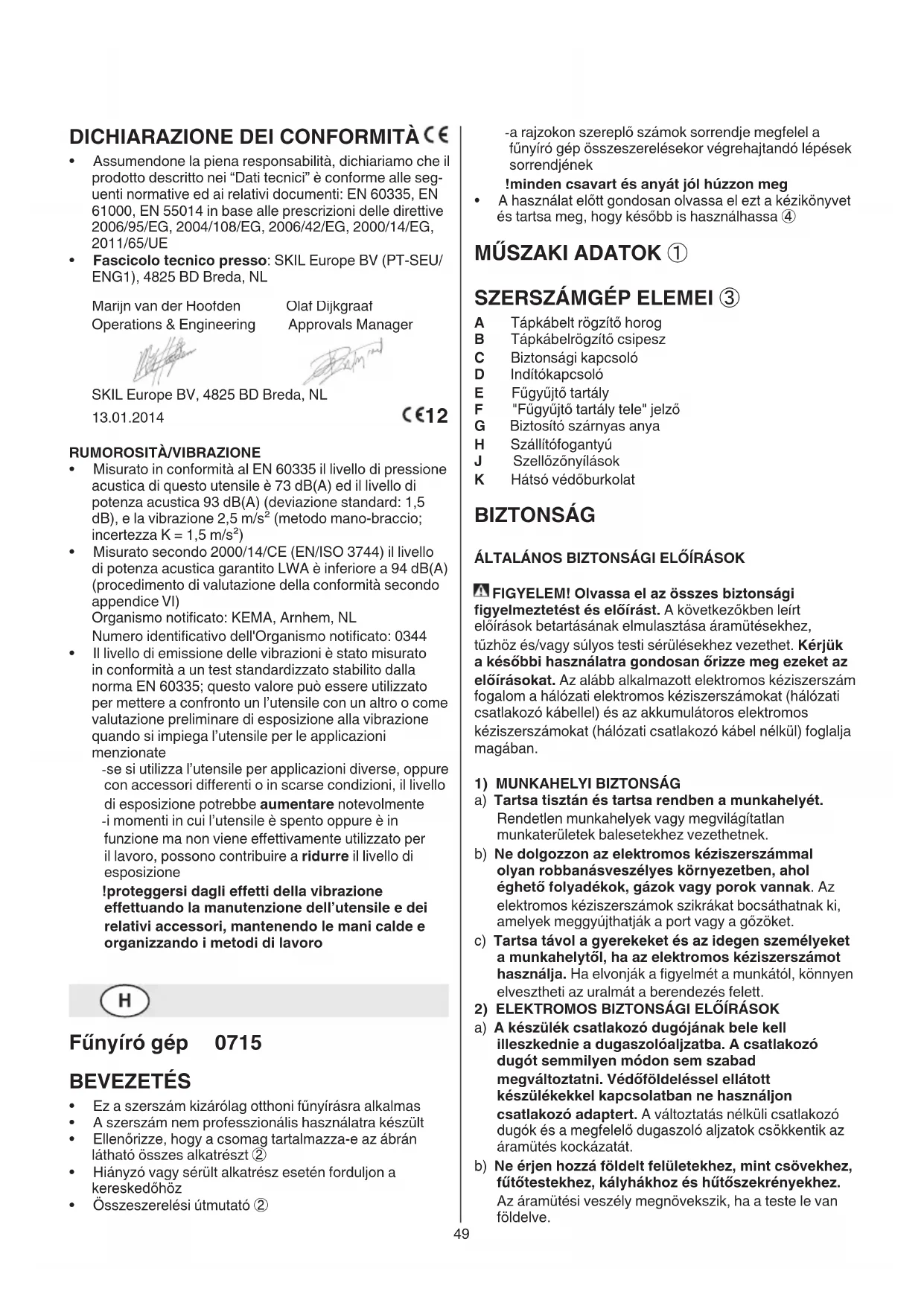 HASZNÁLATI ÚTMUTATÓ 0715 AA SKIL