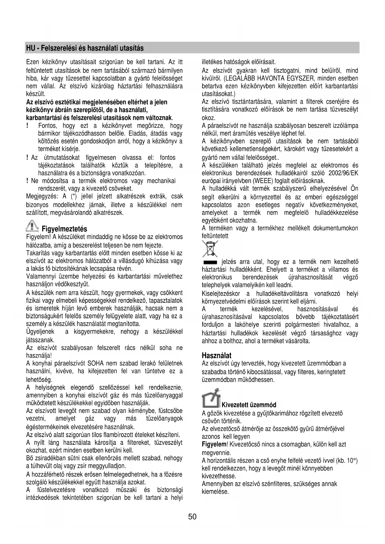 Figyelem! Az elszívó tisztán tartására, valamint a filterek